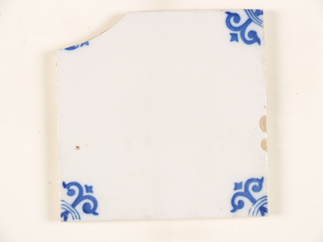 Tegel met blauwwit ornamentdecor; hoekmotief