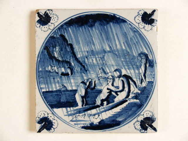Bijbeltegel met blauwwit bijbels decor van de dieren in de ark van Noach