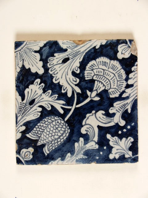 Tegel met een blauwwit diagonaal ornamentdecor: kievitseitjes