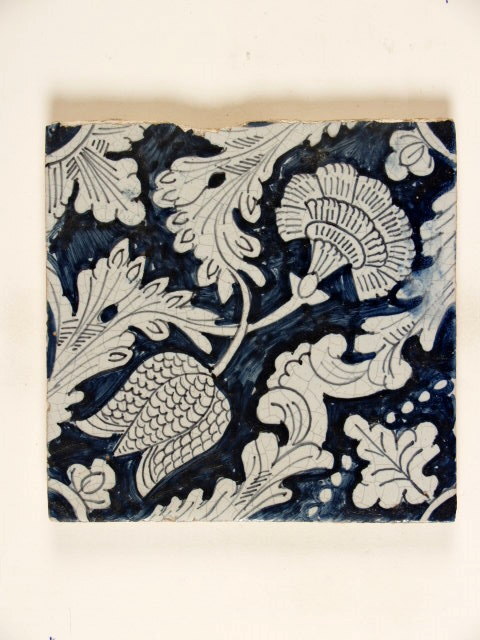 Tegel met een blauwwit diagonaal ornamentdecor: kievitseitjes