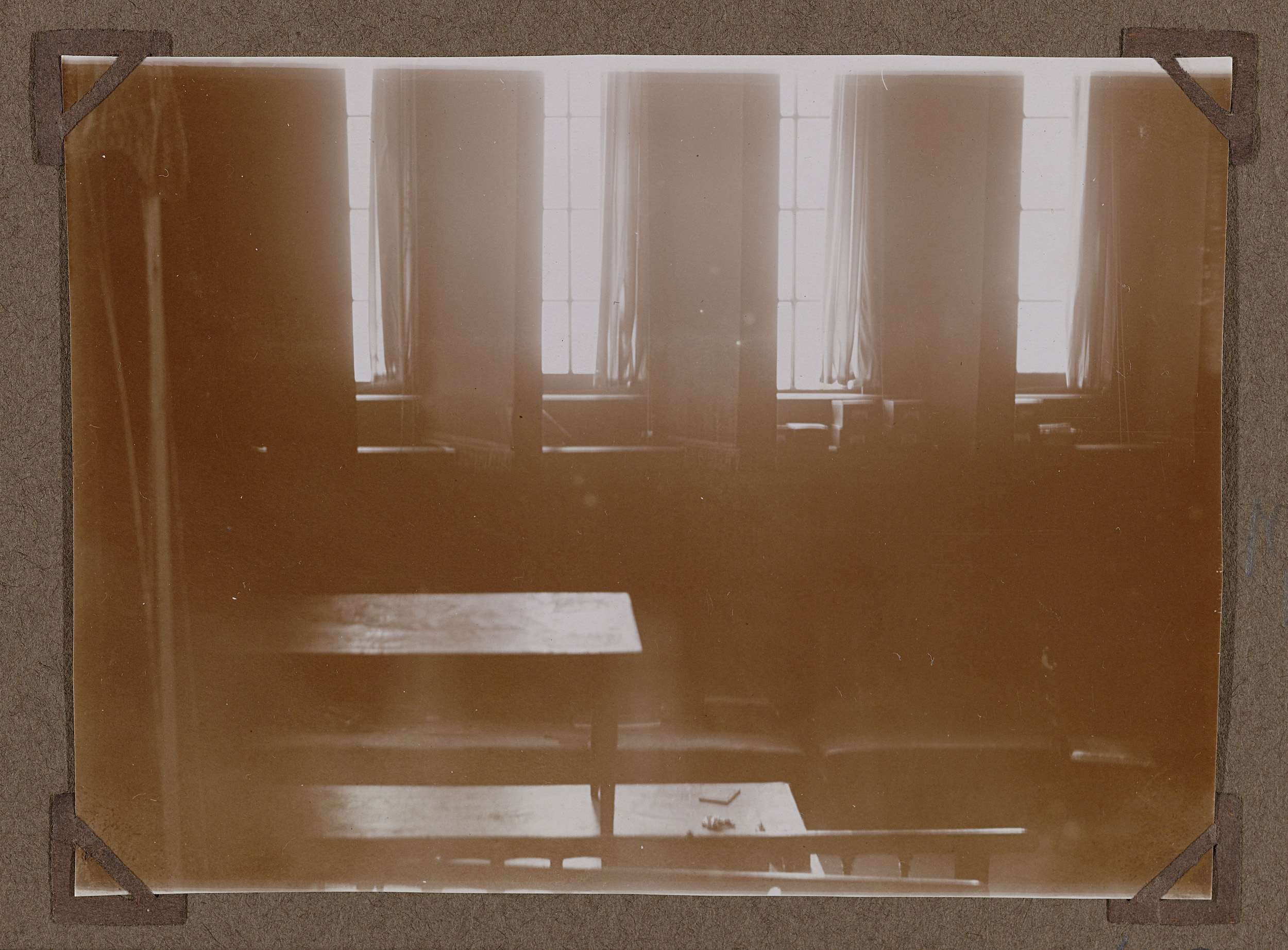 Nachtwachtuitbouw vanuit het noorden. De luiken, waarvoor de lamellen hangen, zorgen voor de afscherming van het zuidwestelijke zijlicht van de Nachtwacht. Na talloze vruchteloze pogingen de verlichting van de Nachtwacht te verbeteren is besloten voor het schilderij een nieuwe zaal te bouwen. Op 16 juli 1906 wordt de Nachtwachtaanbouw geopend. Het licht valt door een ...