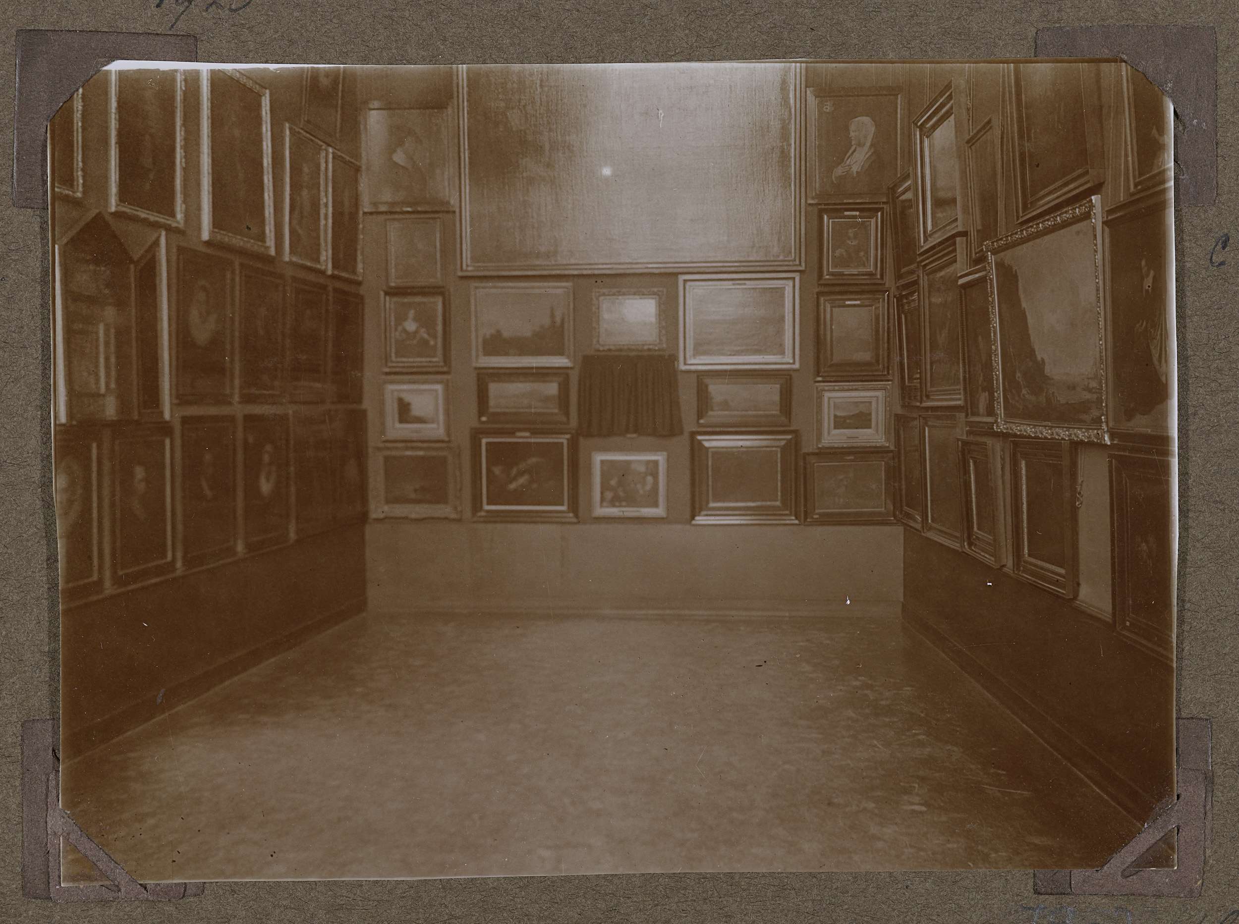 Een Westelijk kabinet met een opstelling van kleine schilderijen van de Oud-Hollandsche School in 1923