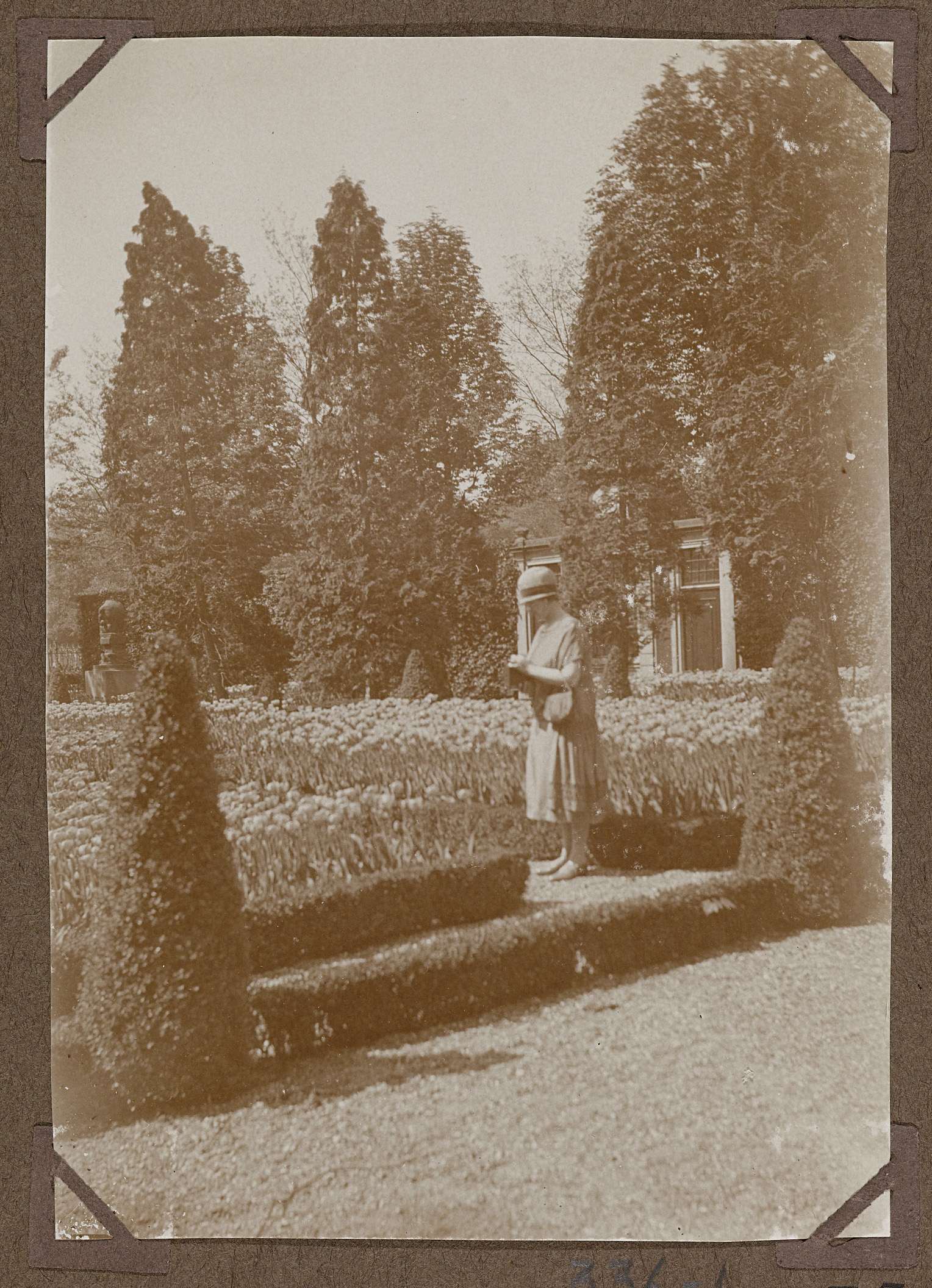 Dame in 'Franse tuin' in 1928