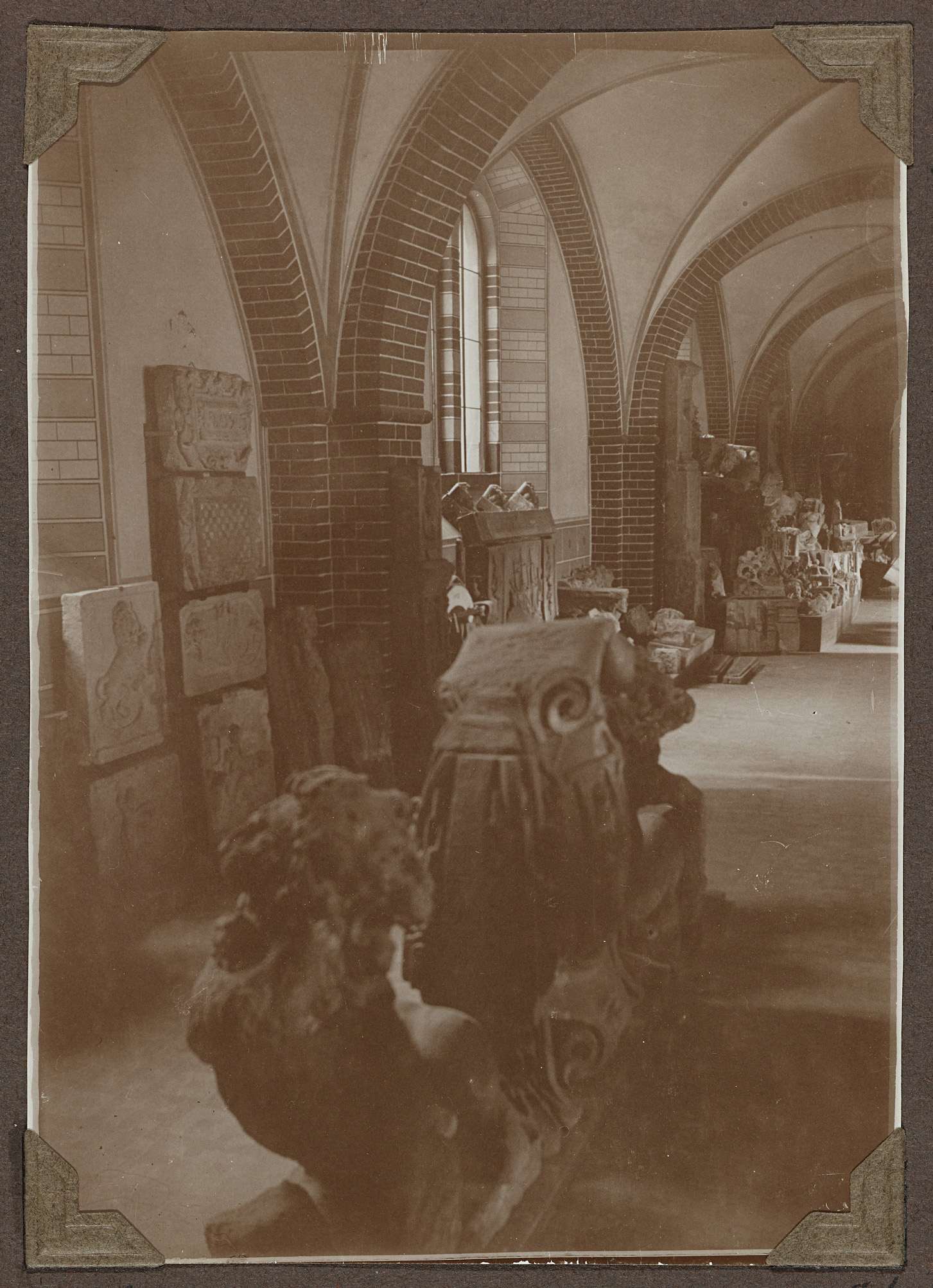 Opstelling van bouwfragmenten in het souterrain in 1929.
