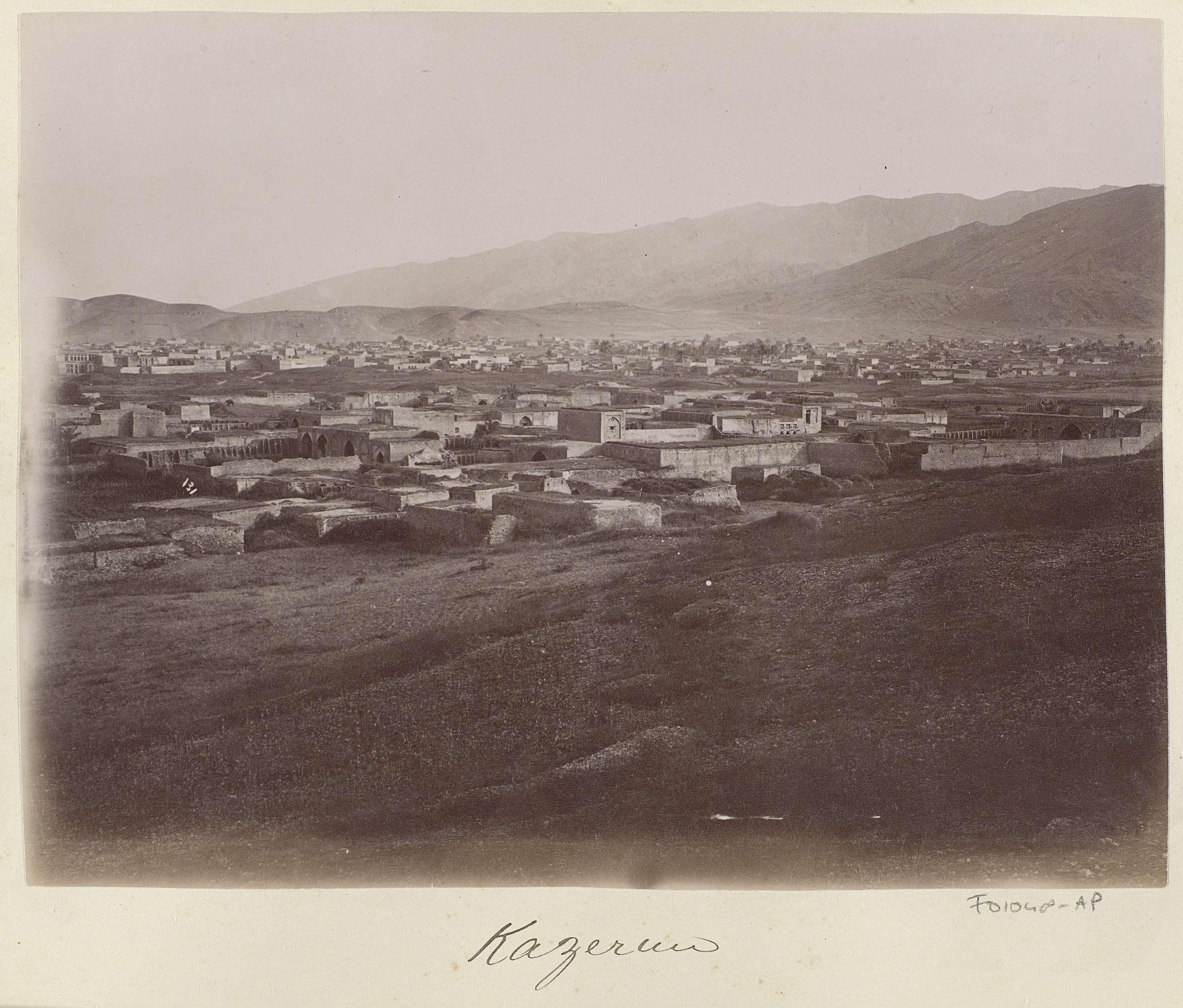 Gezicht op Kazerun en omliggende bergen