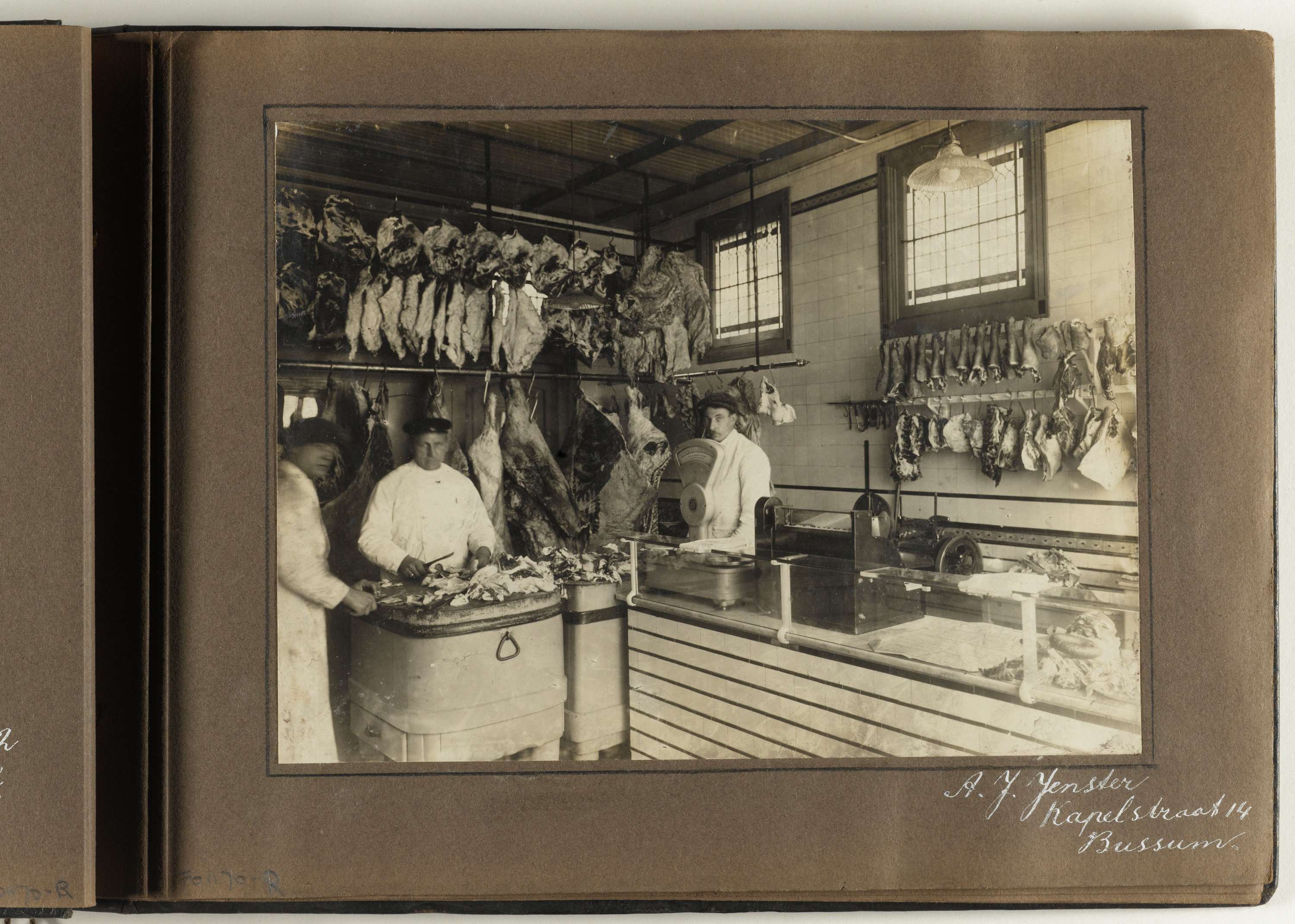 Interieur van de slagerij van A.J. Jenster, Kapelstraat 14, Bussum, Nederland
