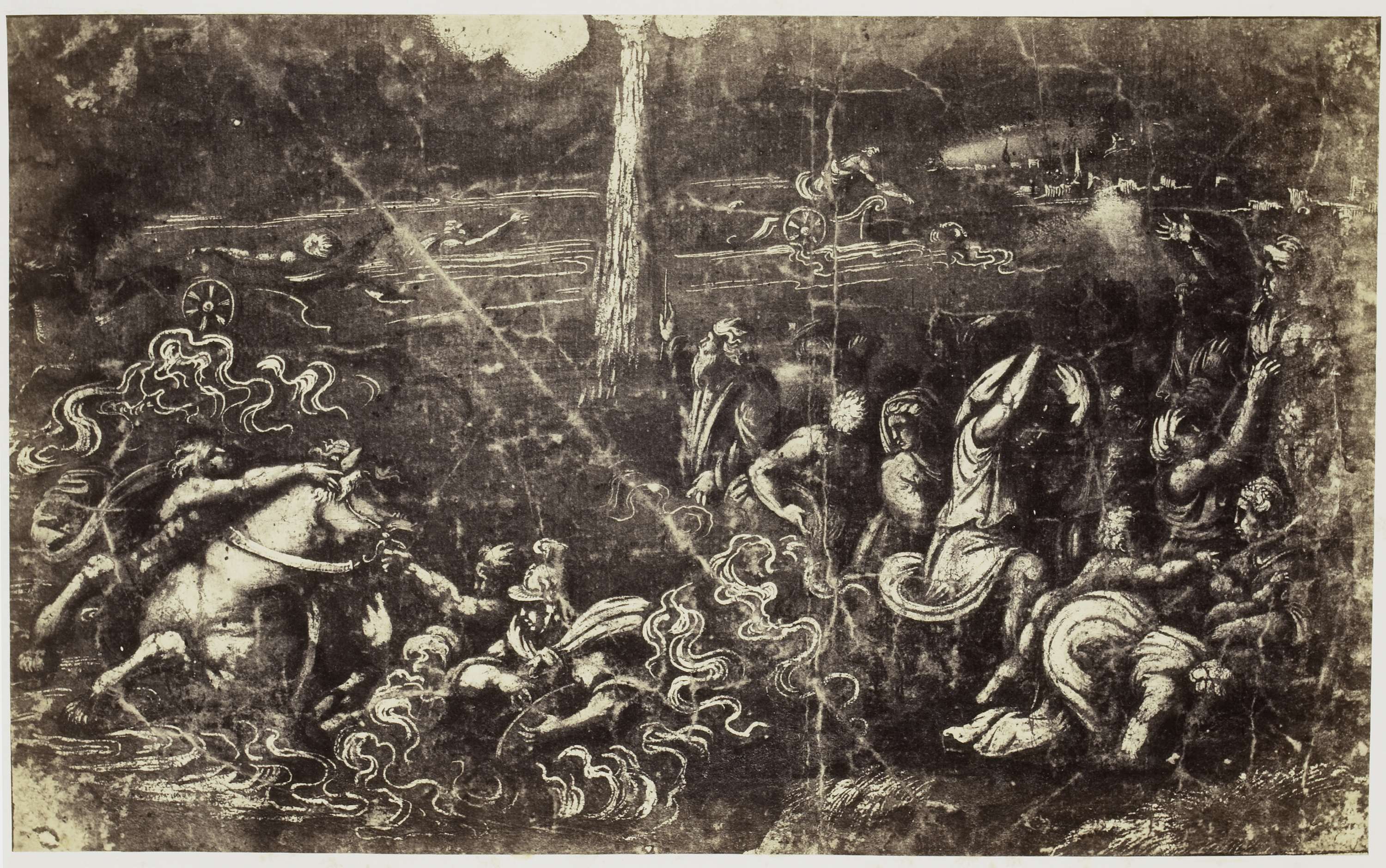 Fotoreproductie van een tekening van Rafaël, verdrinkend leger na Israëls doortocht door de Rode Zee
