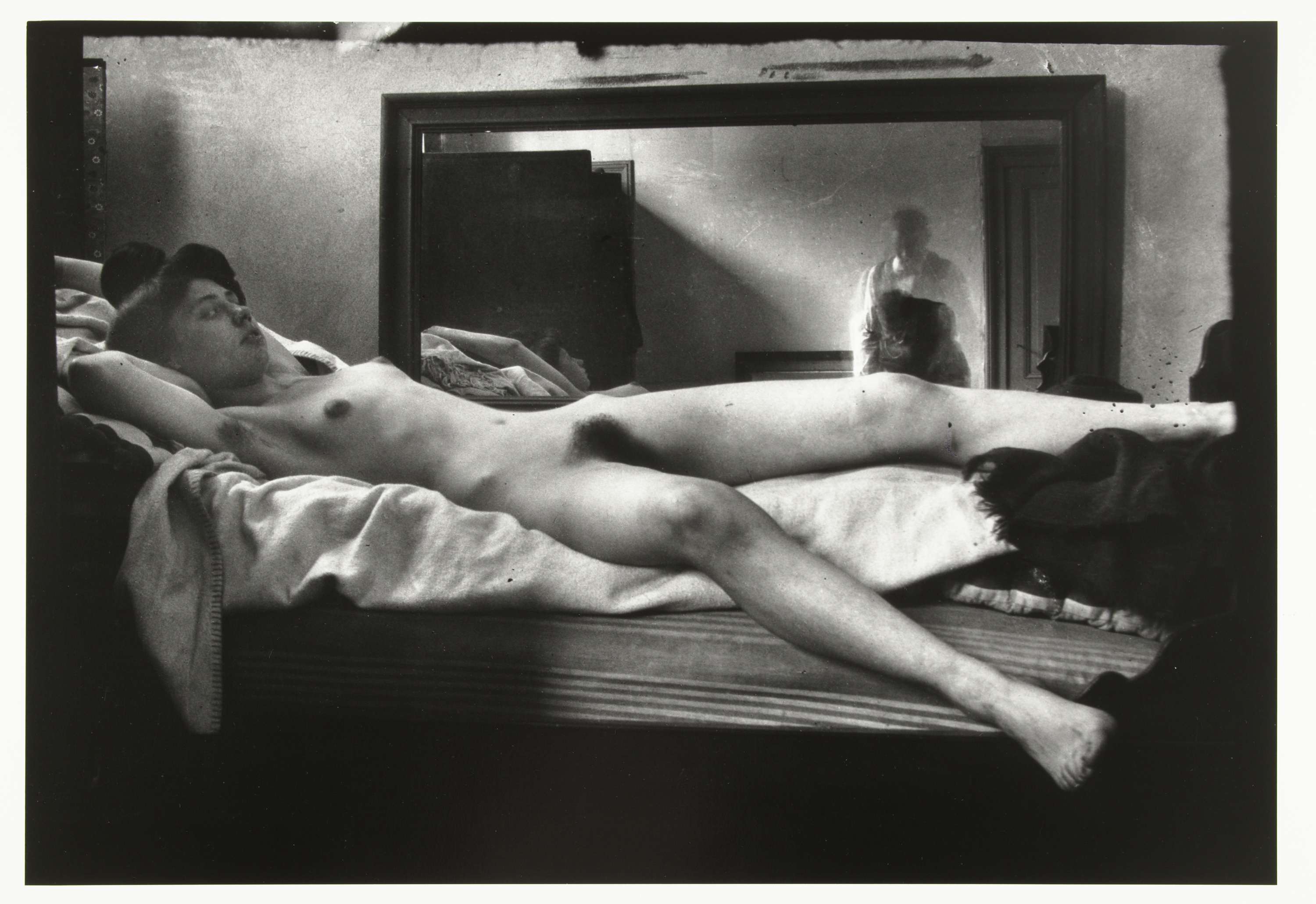 Portret van een vrouwelijk naakt met in de spiegel de fotograferende Breitner