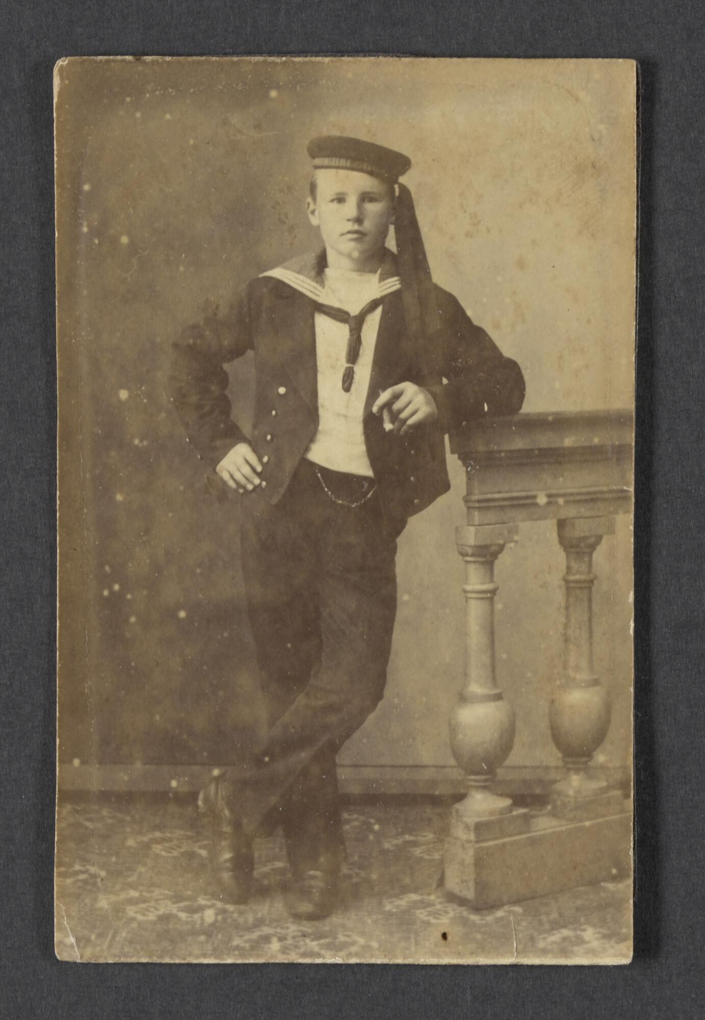 Portretfoto van Feije Spits (1875-1951) als leerling op de Zeevaartschool in Leiden, 1890.