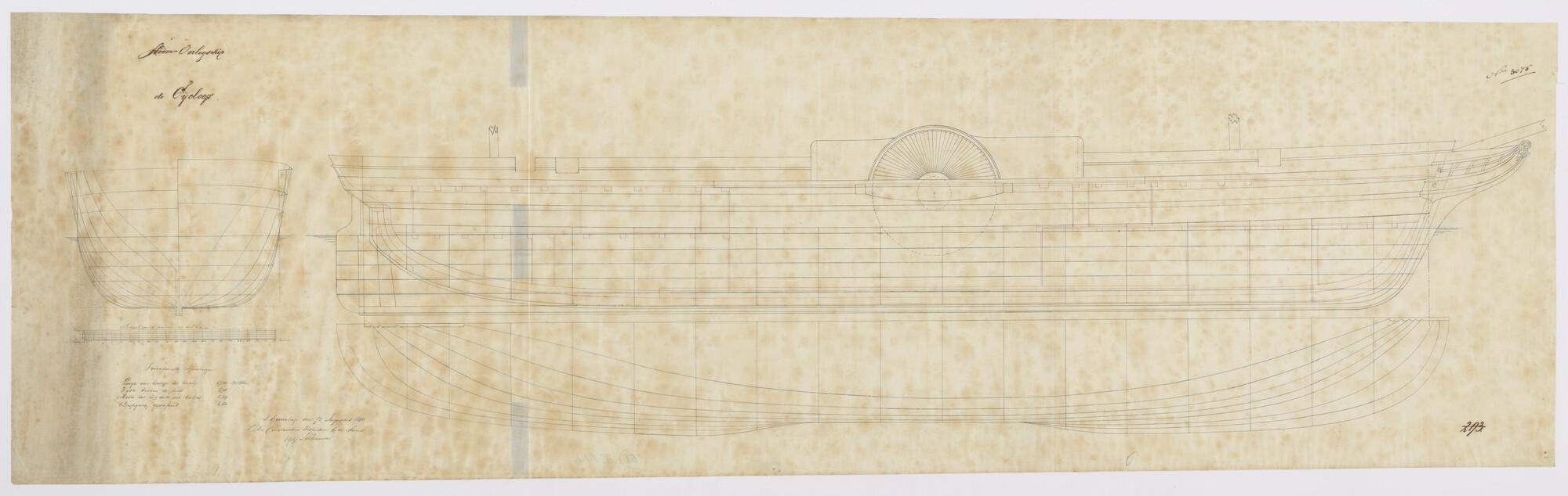 Lijnenplan van het raderstoomschip 2de klasse Zr.Ms. 'Cycloop'