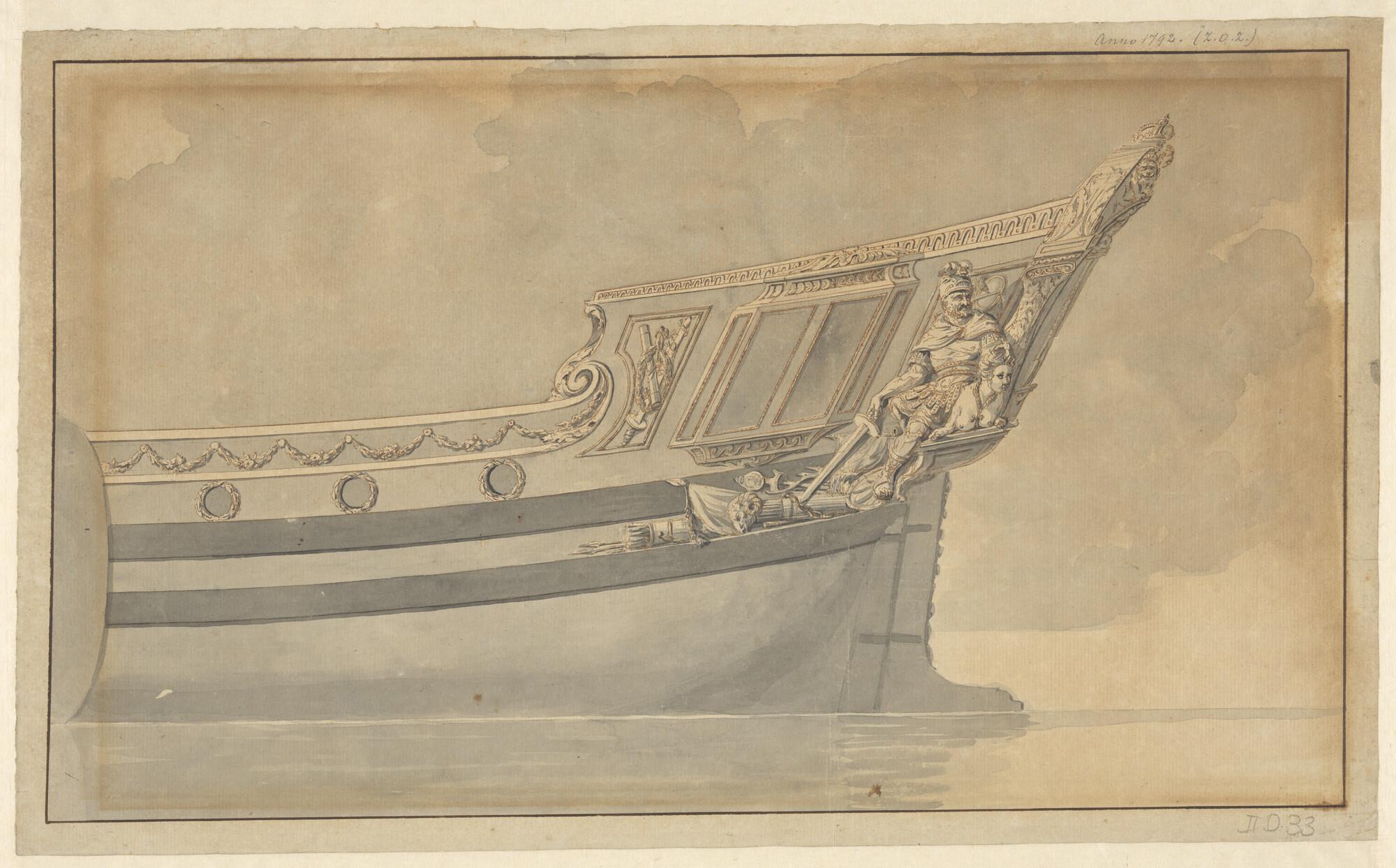 Zijgalerij en schegversiering van het laatste stadhouderlijke jacht.