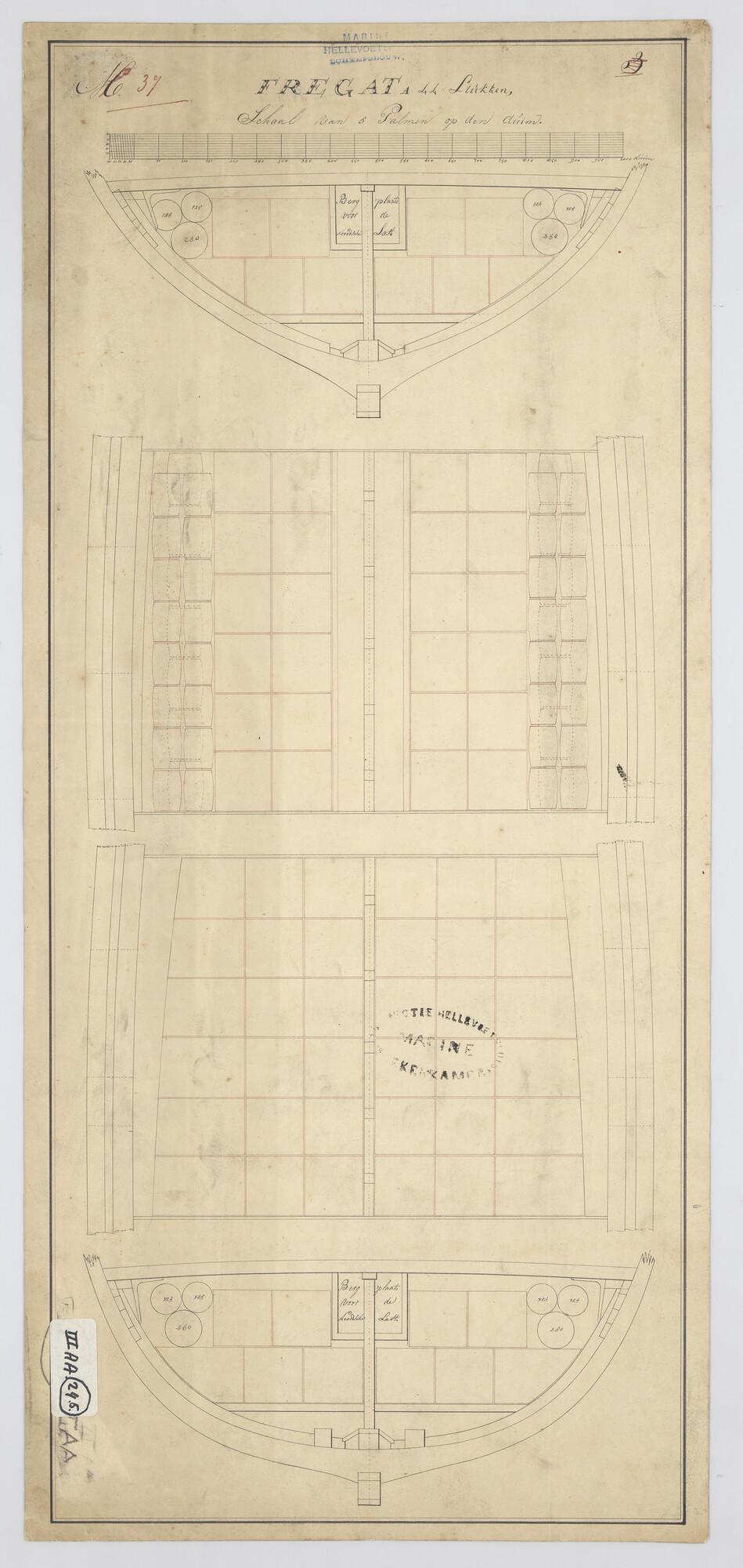 Stuwplan van het waterruim van een fregat van 44 stukken