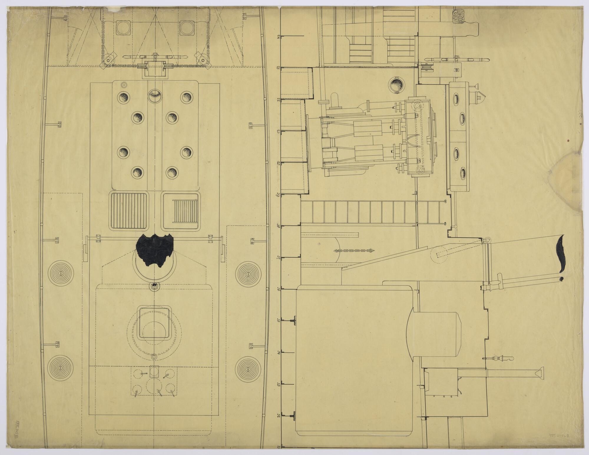 Algemeen plan van stoomsleepboot "Johanna Frederica". Middenstuk van de tekening (schaal 1:10).