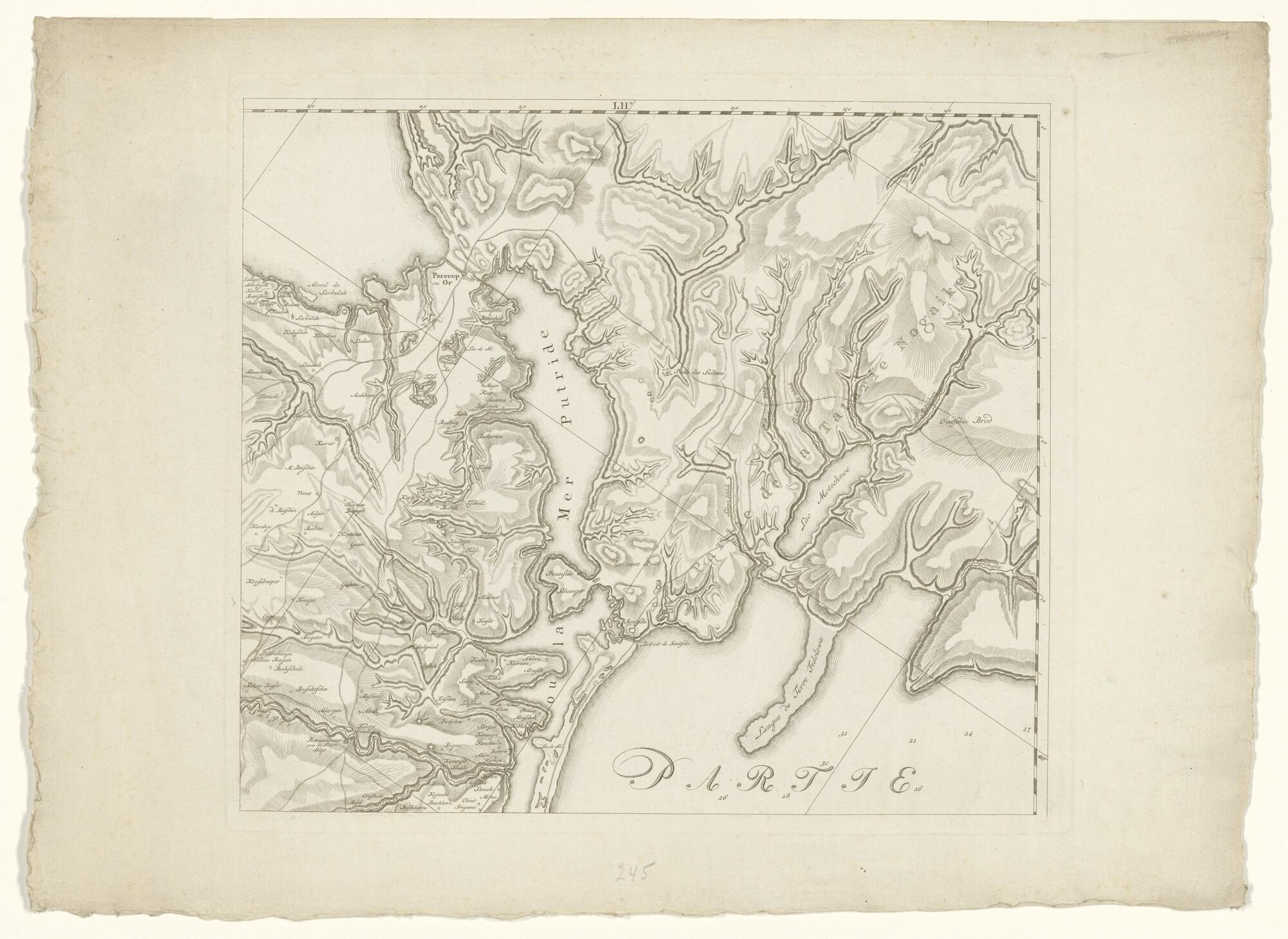 Kaart van de Krim, door J.H. van Kinsbergen, in vier delen: Noord- Oostelijke deel. Gegraveerd door N. v.d. Meer, uitgegeven door H. Frieseman, Amsterdam, 1787.