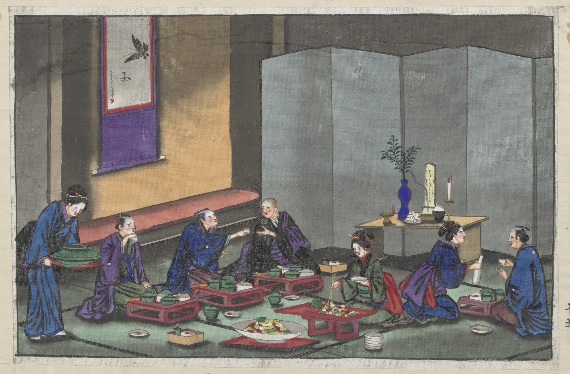 Tekening van de uitvaart van een pater familias: het herdenkingsfeest in de tempel.
