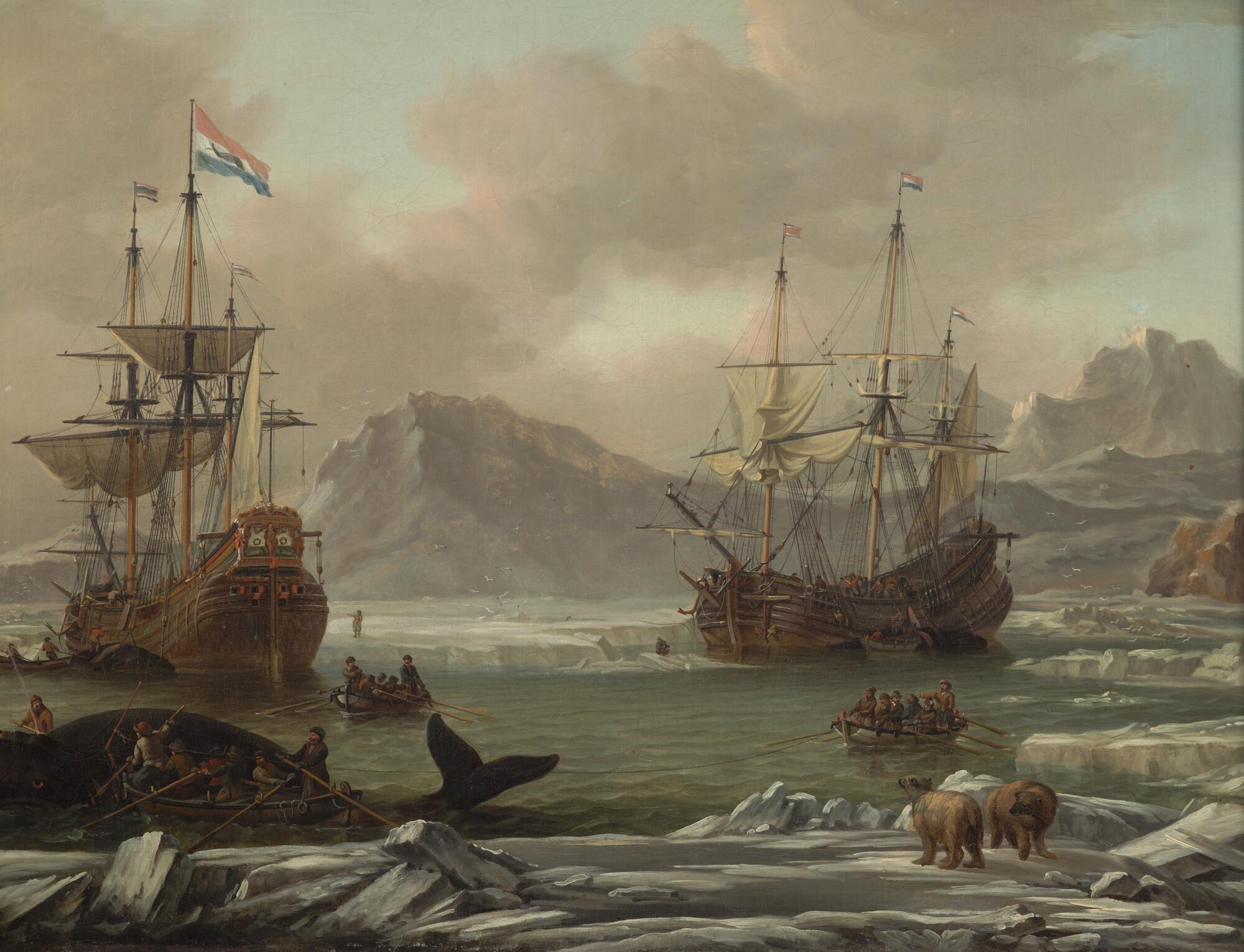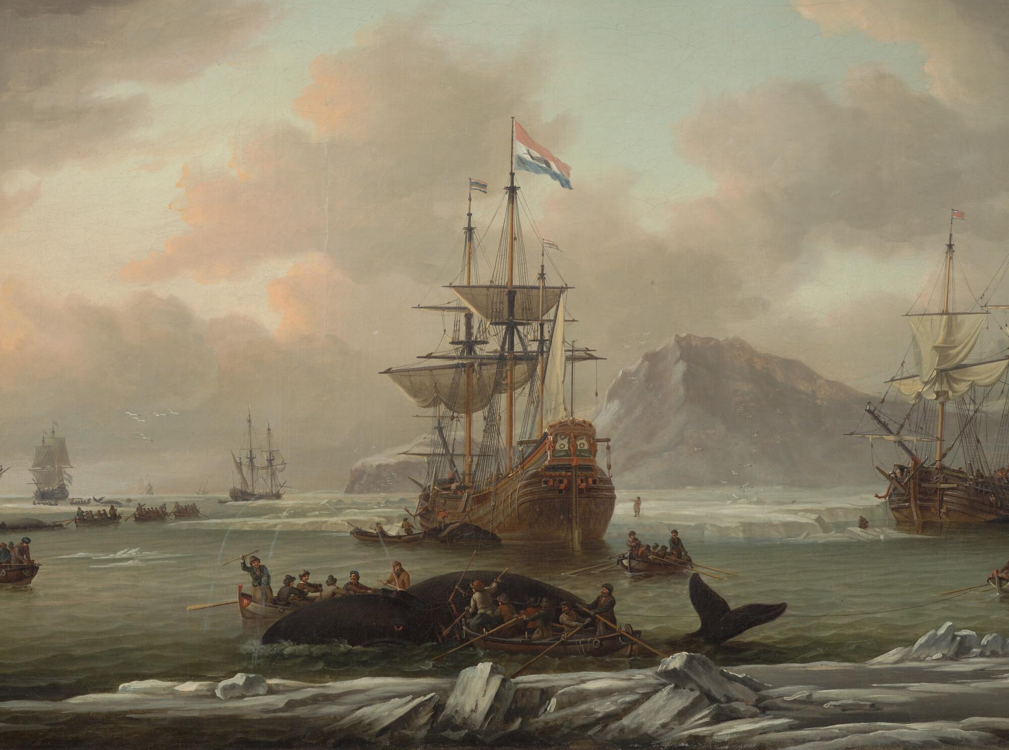 Walvisvangst in een baai in de Noordelijke IJszee.