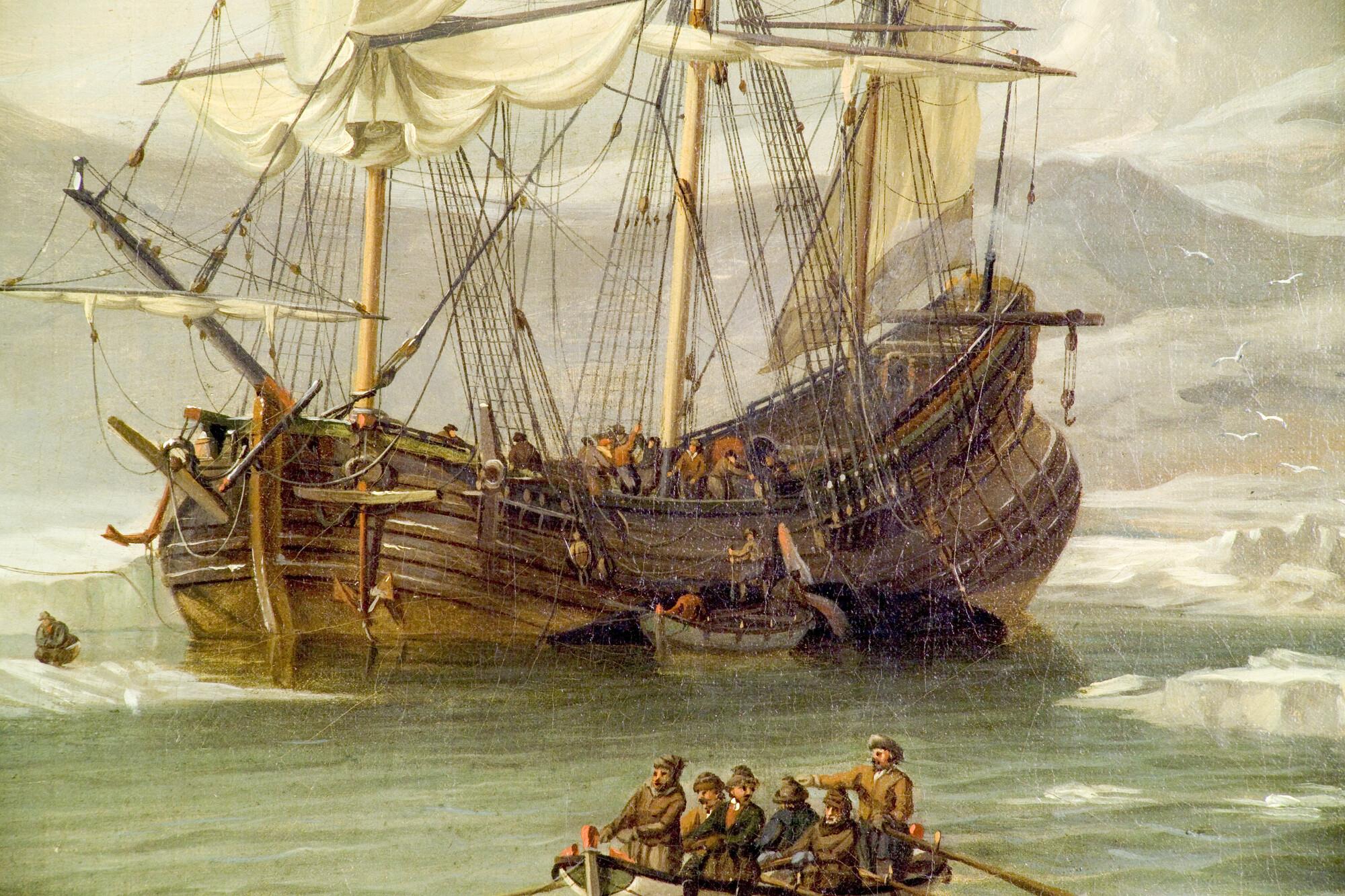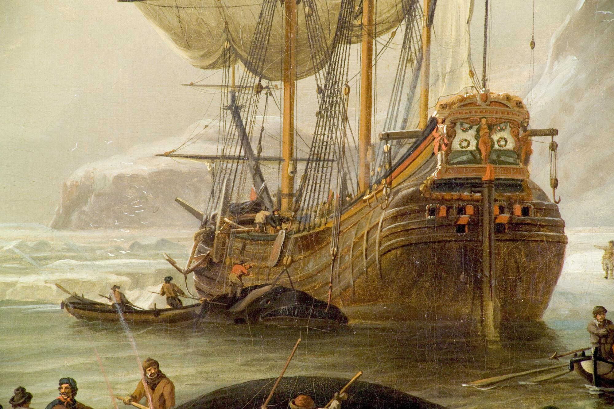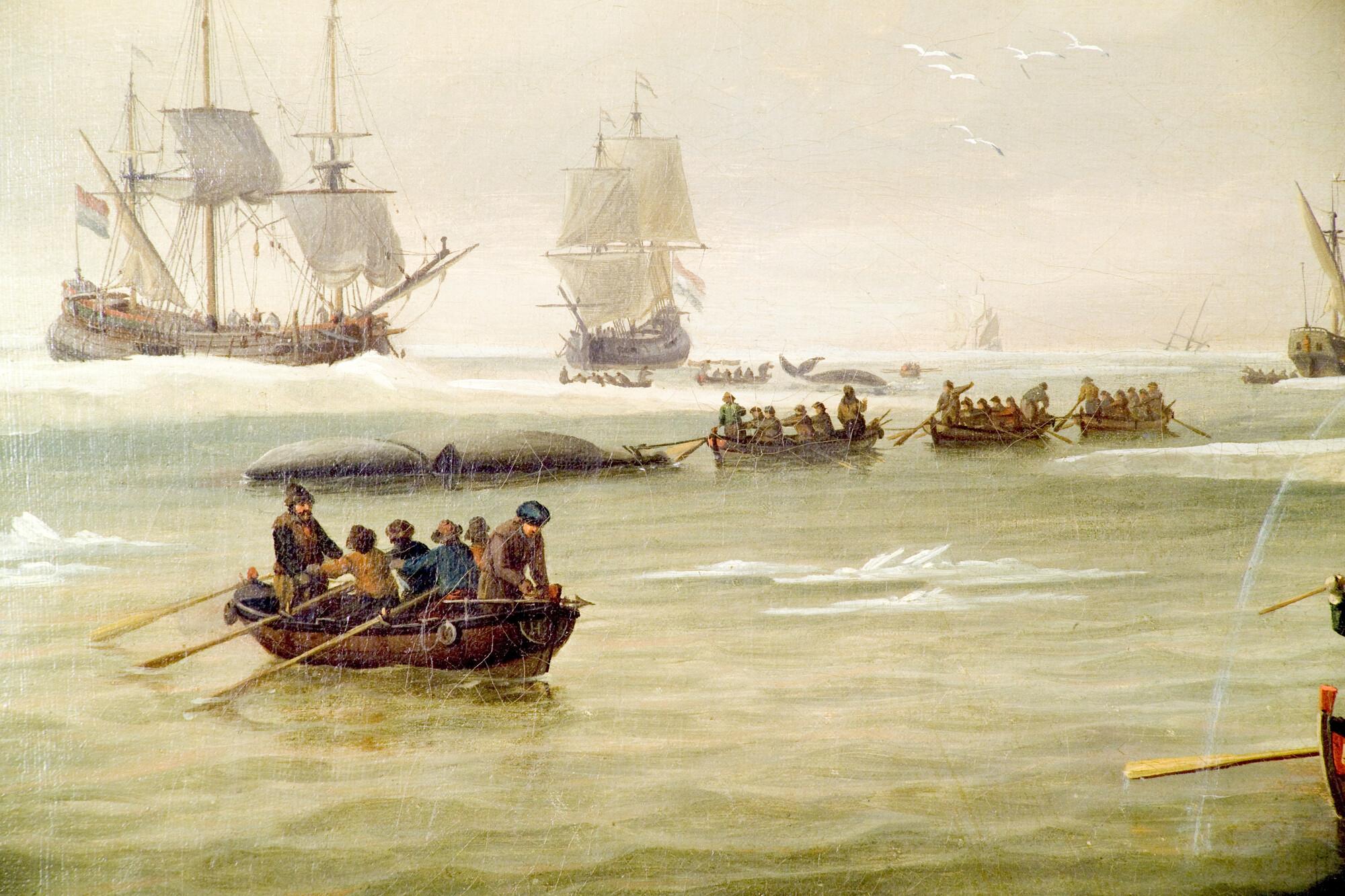 Walvisvangst in een baai in de Noordelijke IJszee