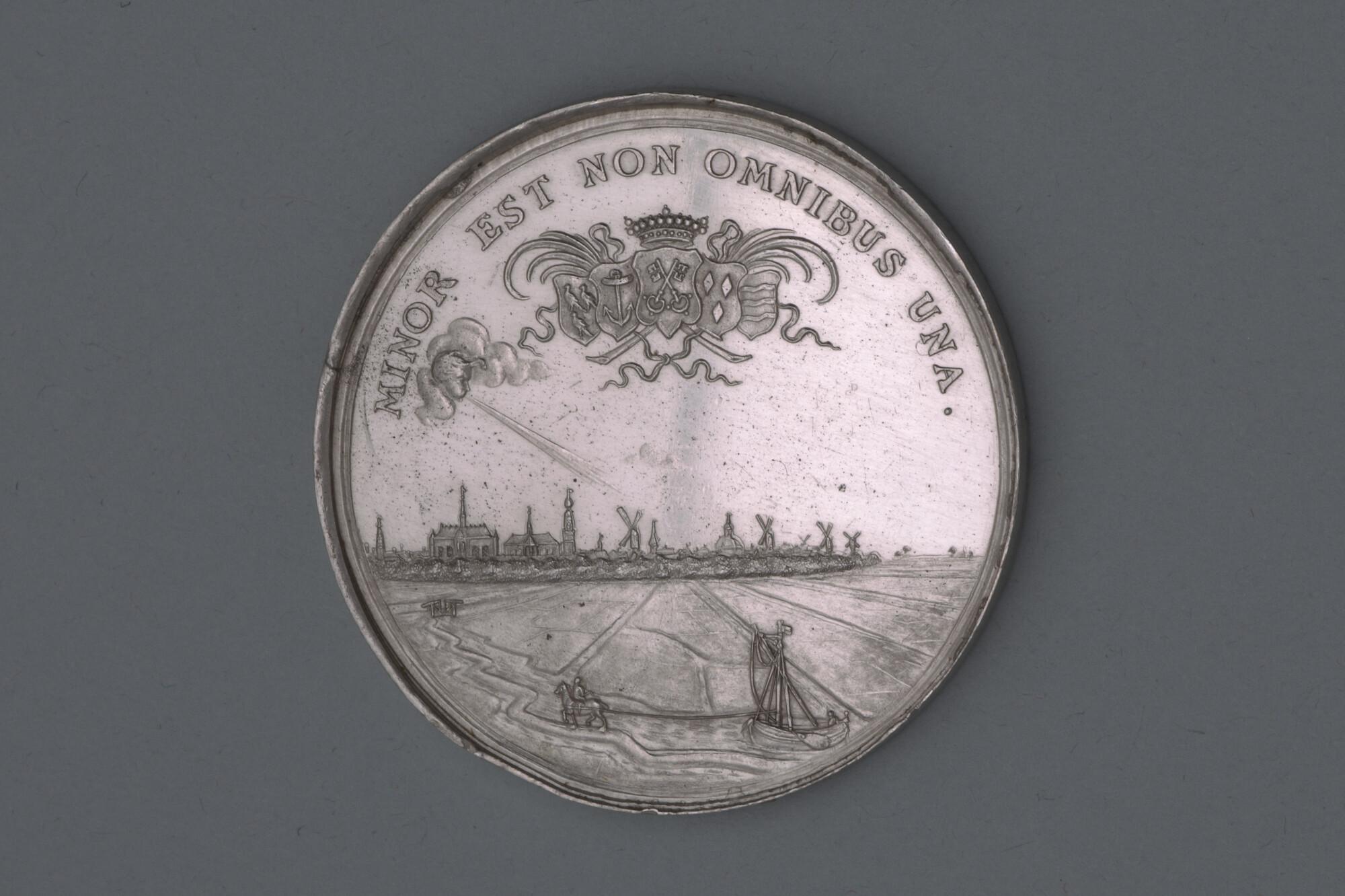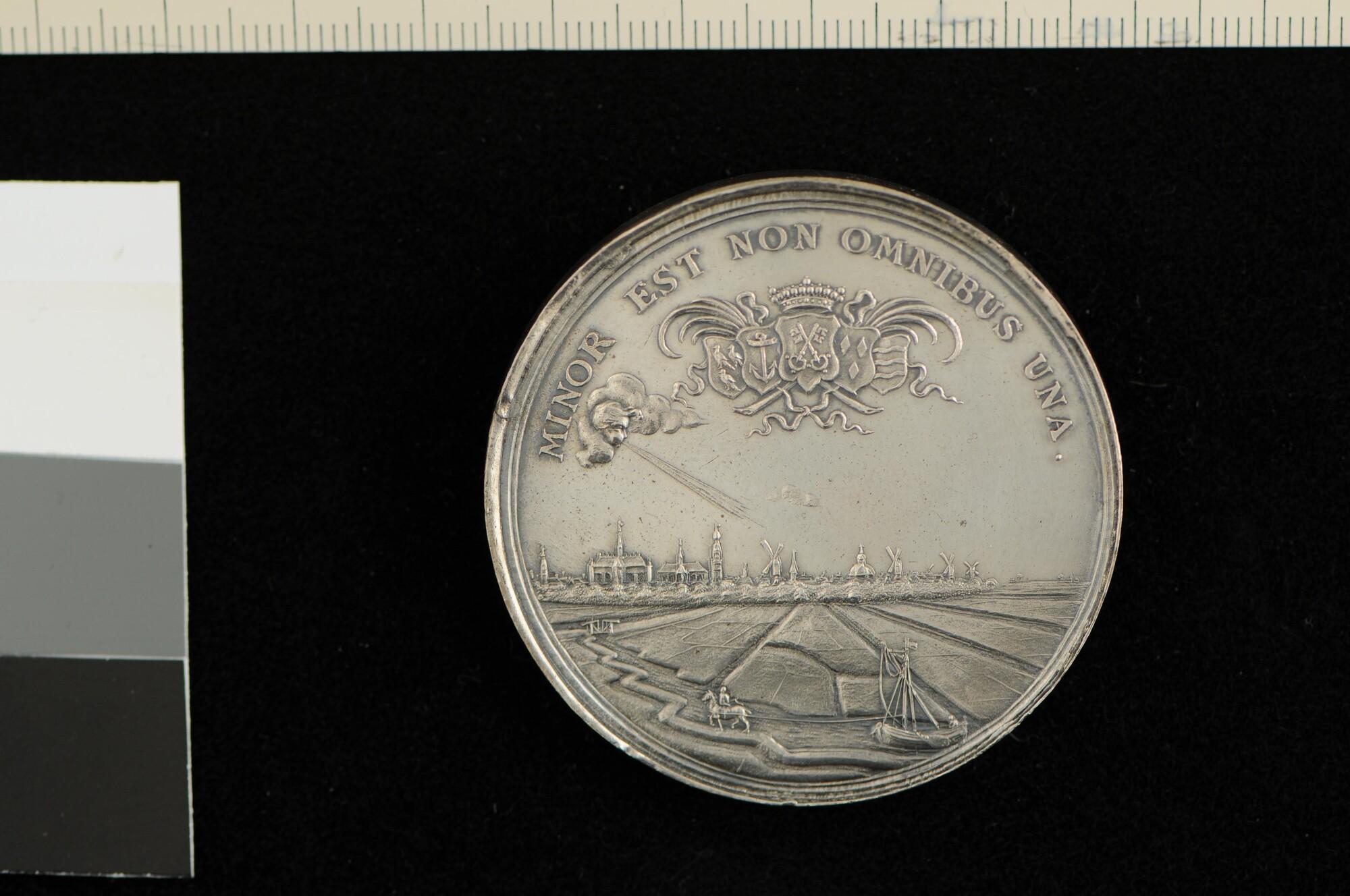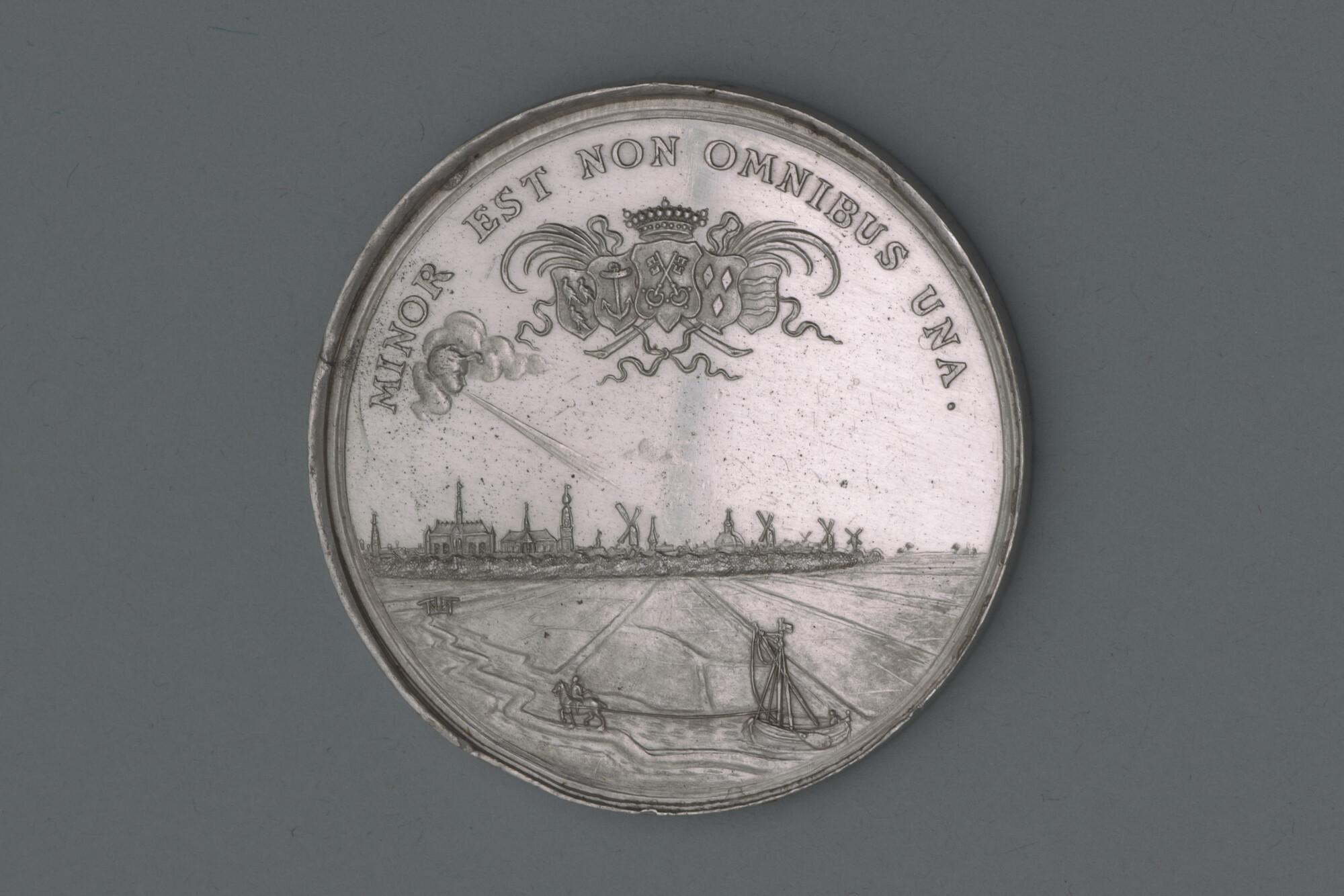 Penning geslagen ter gelegenheid van het aanleggen van een jaagpad langs de Zijl bij Leiden, 1683.