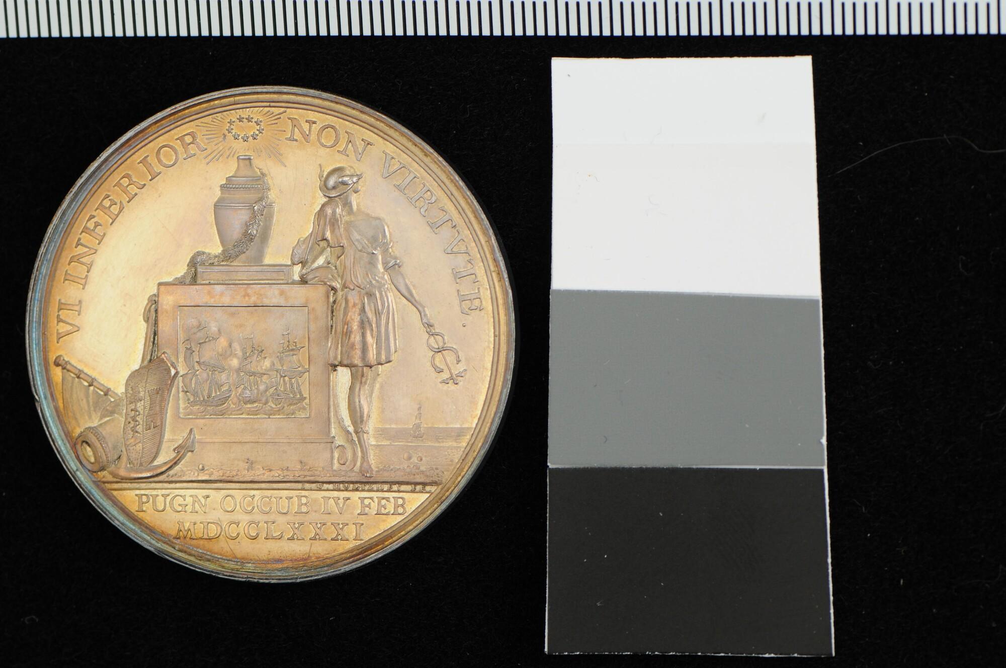 Penning op het sneuvelen van schout-bij-nacht Willem Crul, aan boord van de "Mars", tegen de Engelse schepen onder Rodney, 1781.