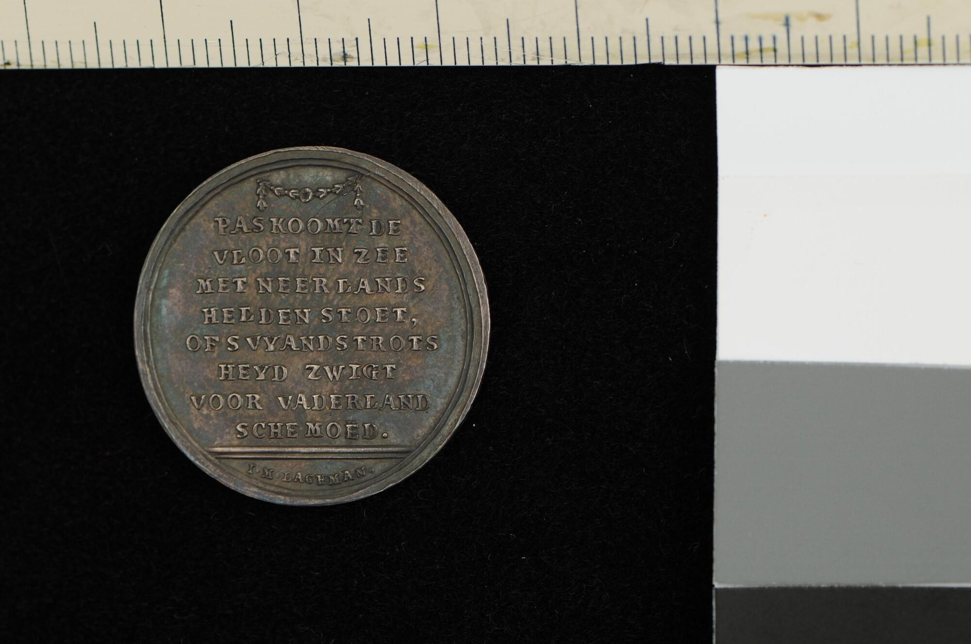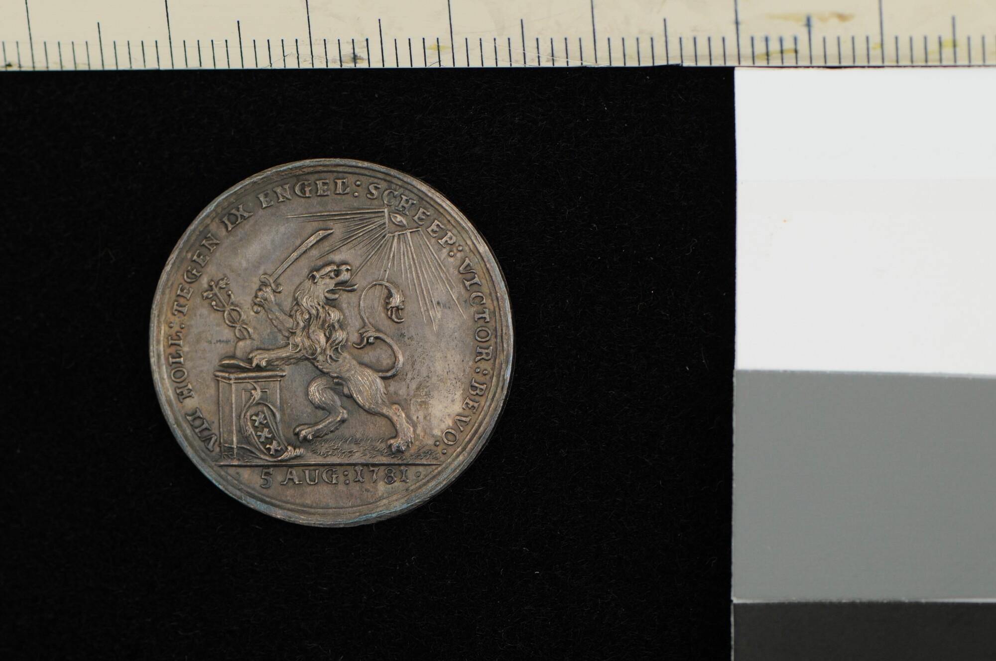 Penning op de zeeslag bij de Doggersbank tussen de Engelse en Nederlandse vloot, 1781.