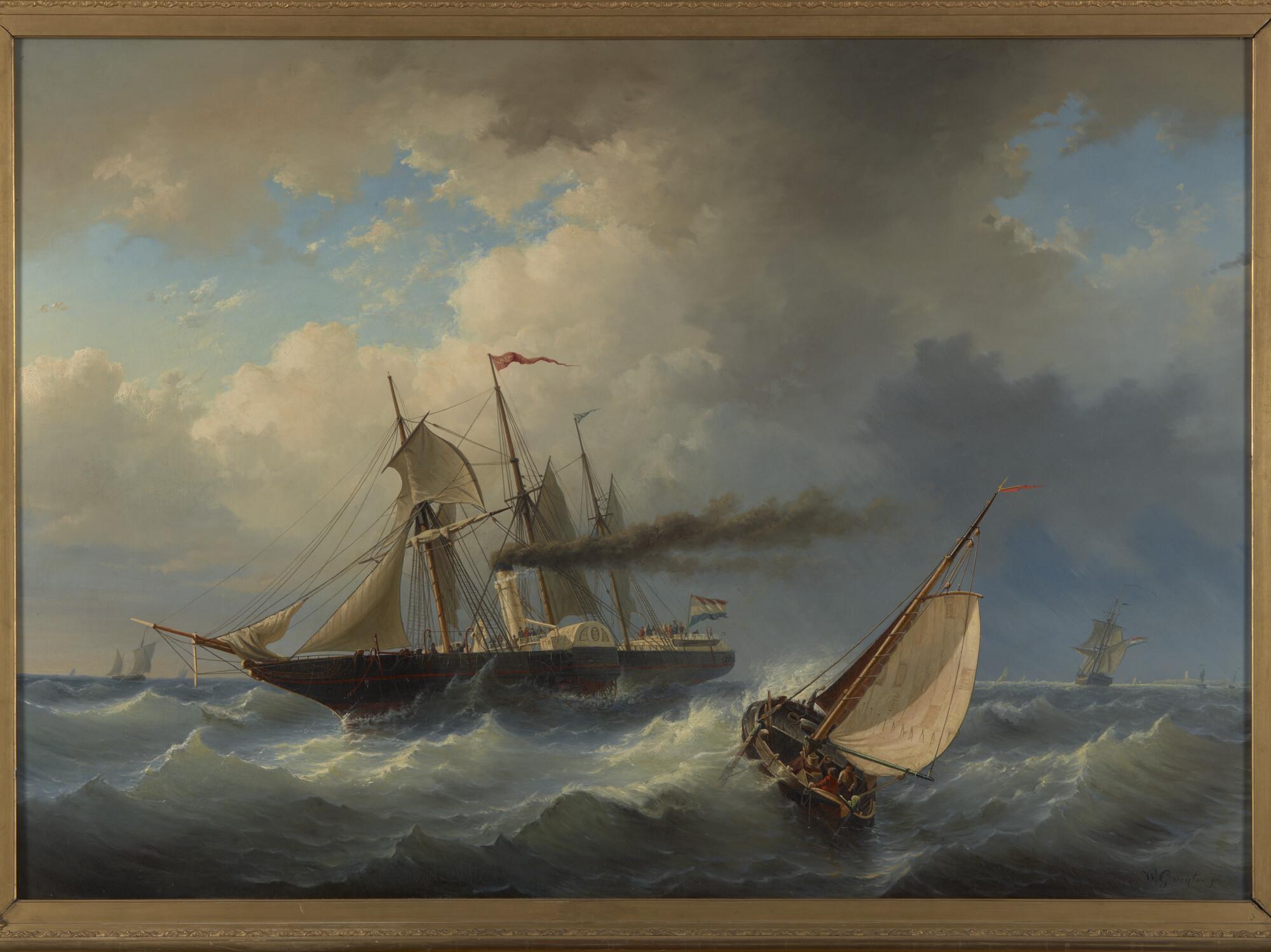 Het raderstoomschip Arti et Amicitiae in de wending