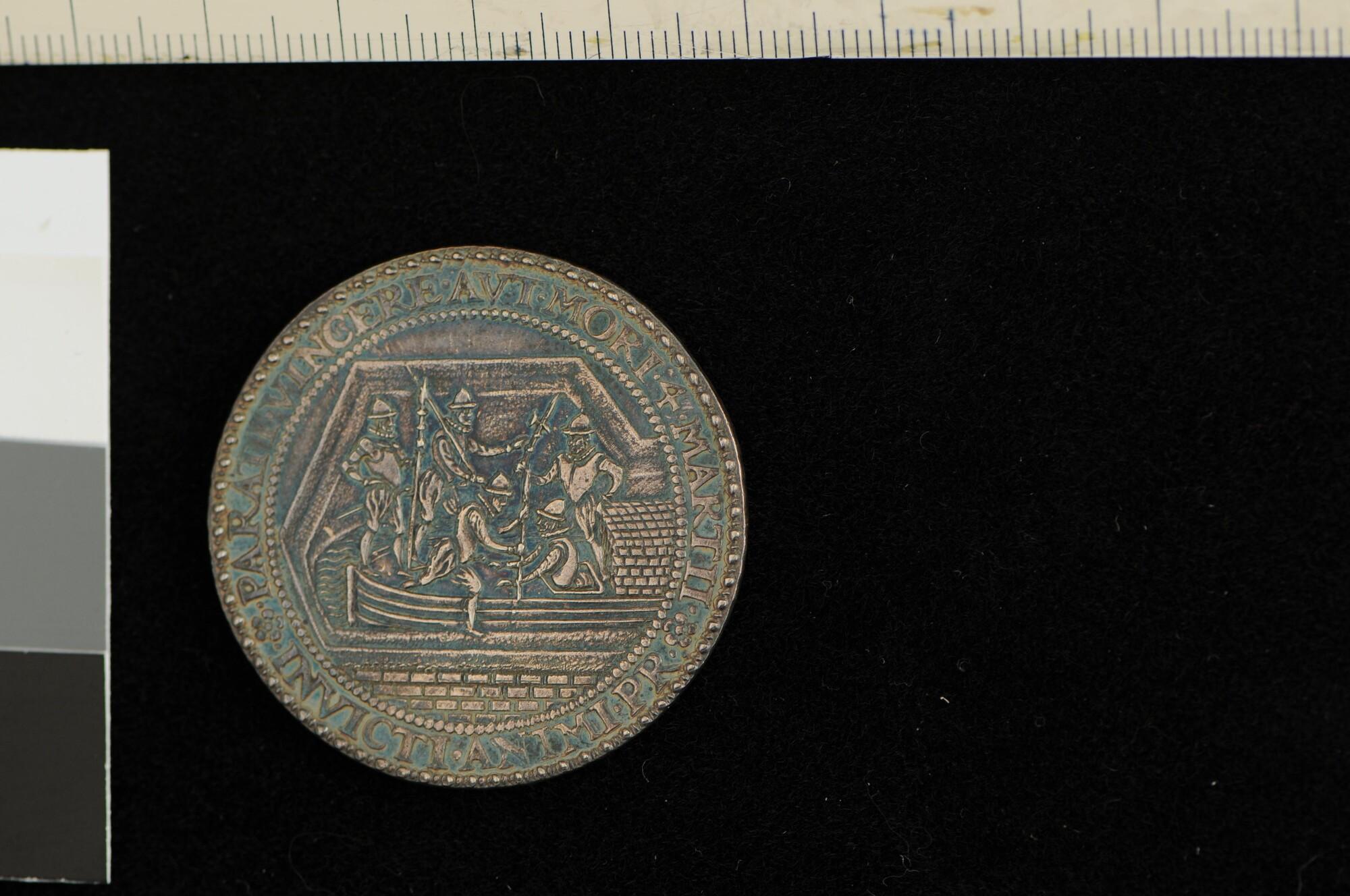 Penning op de inname van Breda op de Spanjaarden, door de troepen van prins Maurits met een turfschip, 1590.