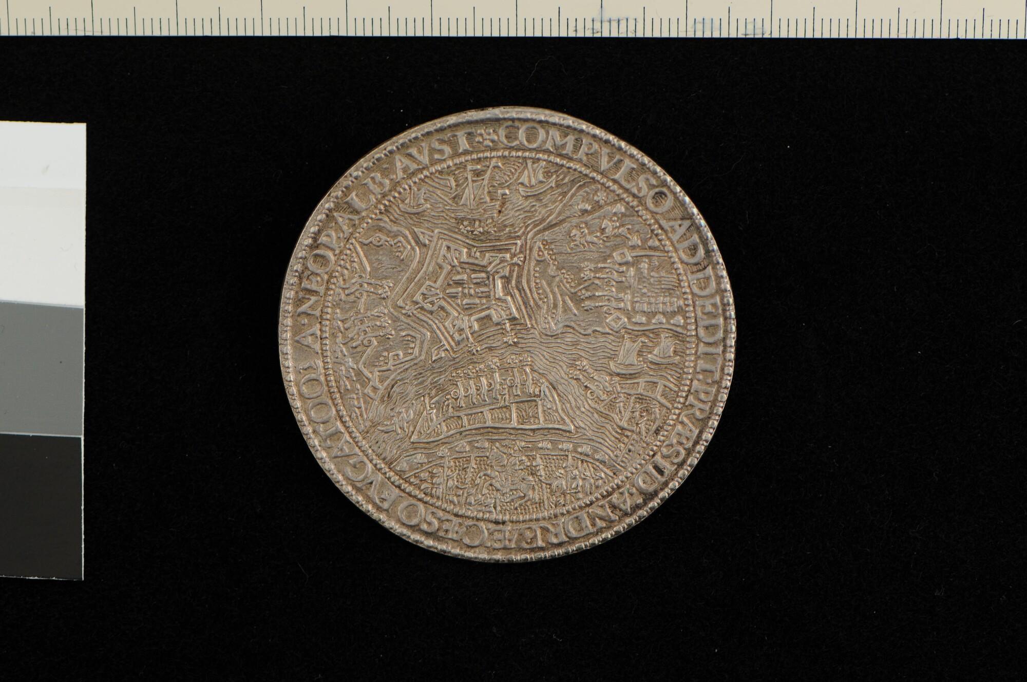 Zilveren penning geslagen op last van de Staten Generaal ter herinnering aan de Slag bij Nieuwpoort, 1600.