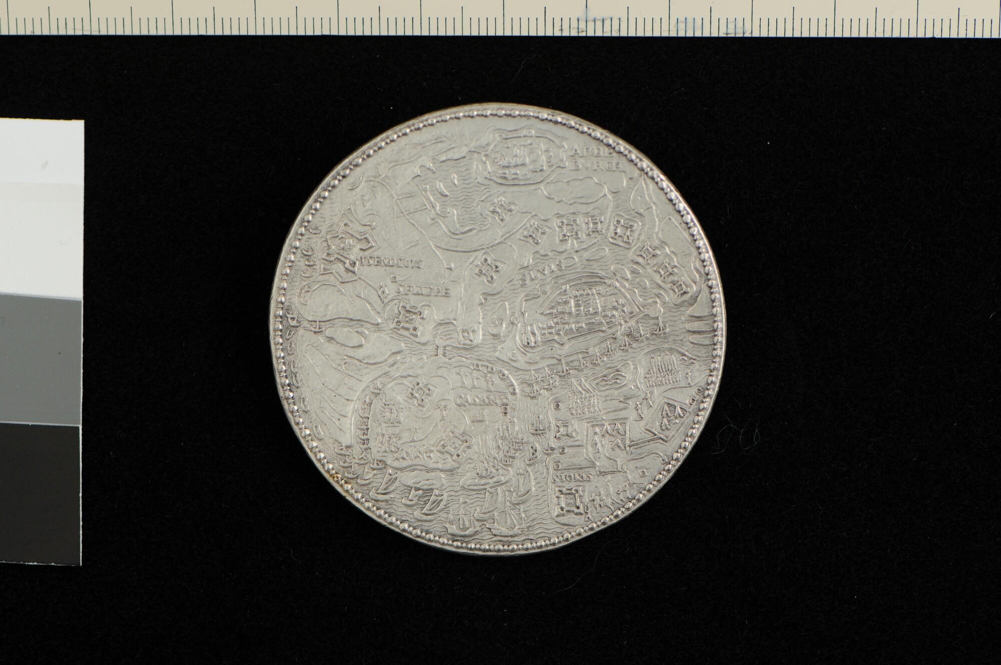 Penning geslagen op de overgave van Oostende aan Spinola en de verovering van Sluis door Staatse troepen, 1604.