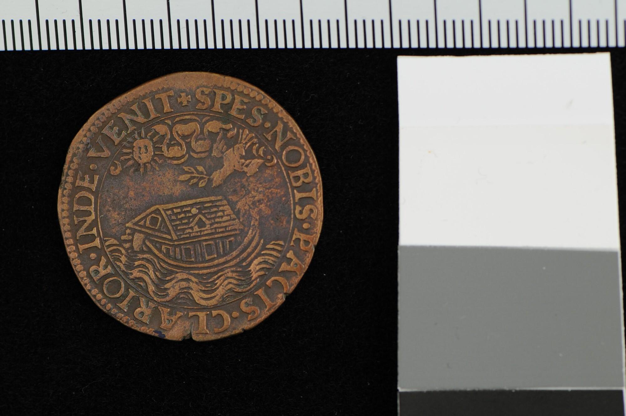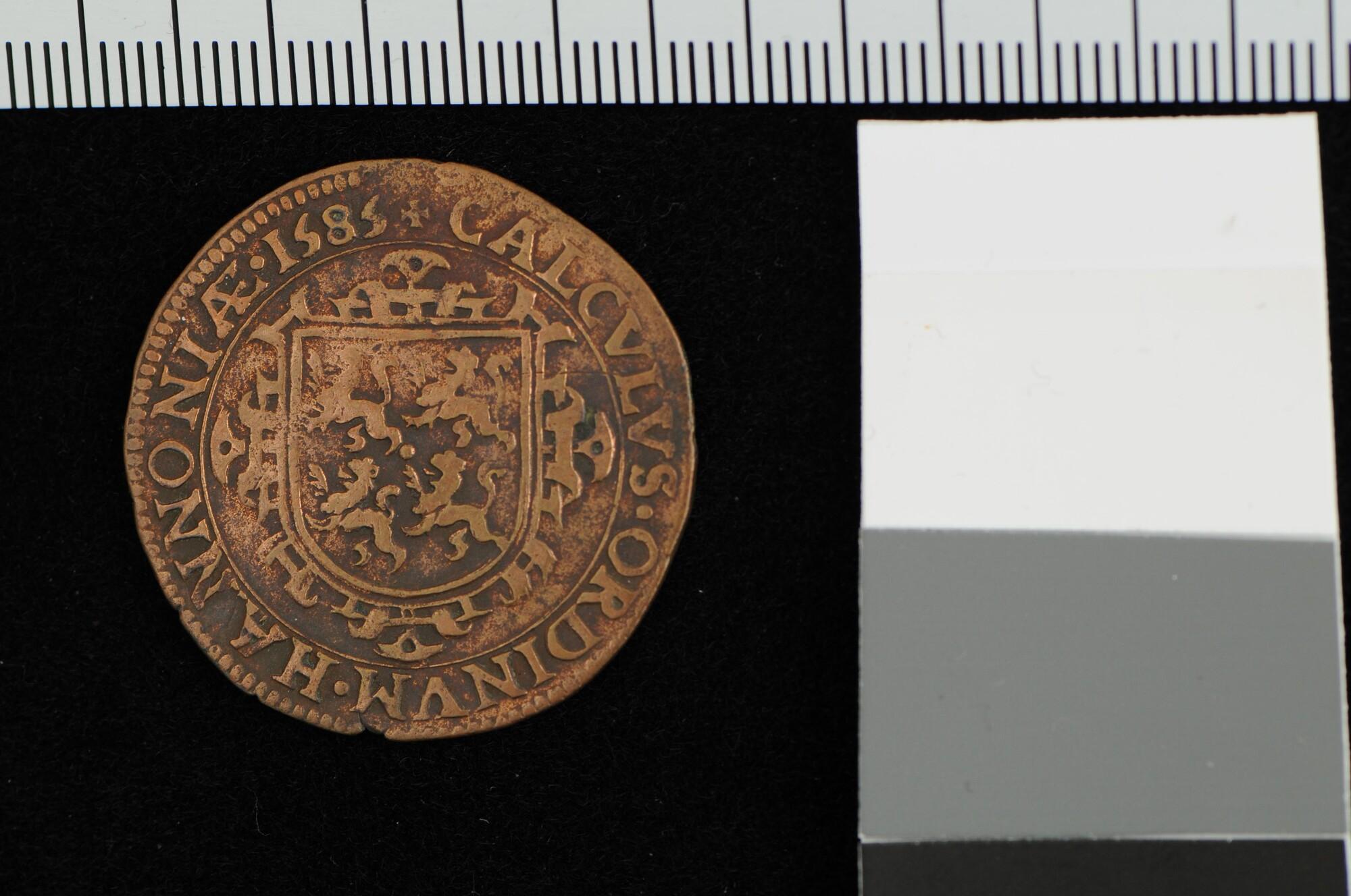 Rekenpenning geslagen op het vredesverlangen van het gewest Henegouwen, 1585