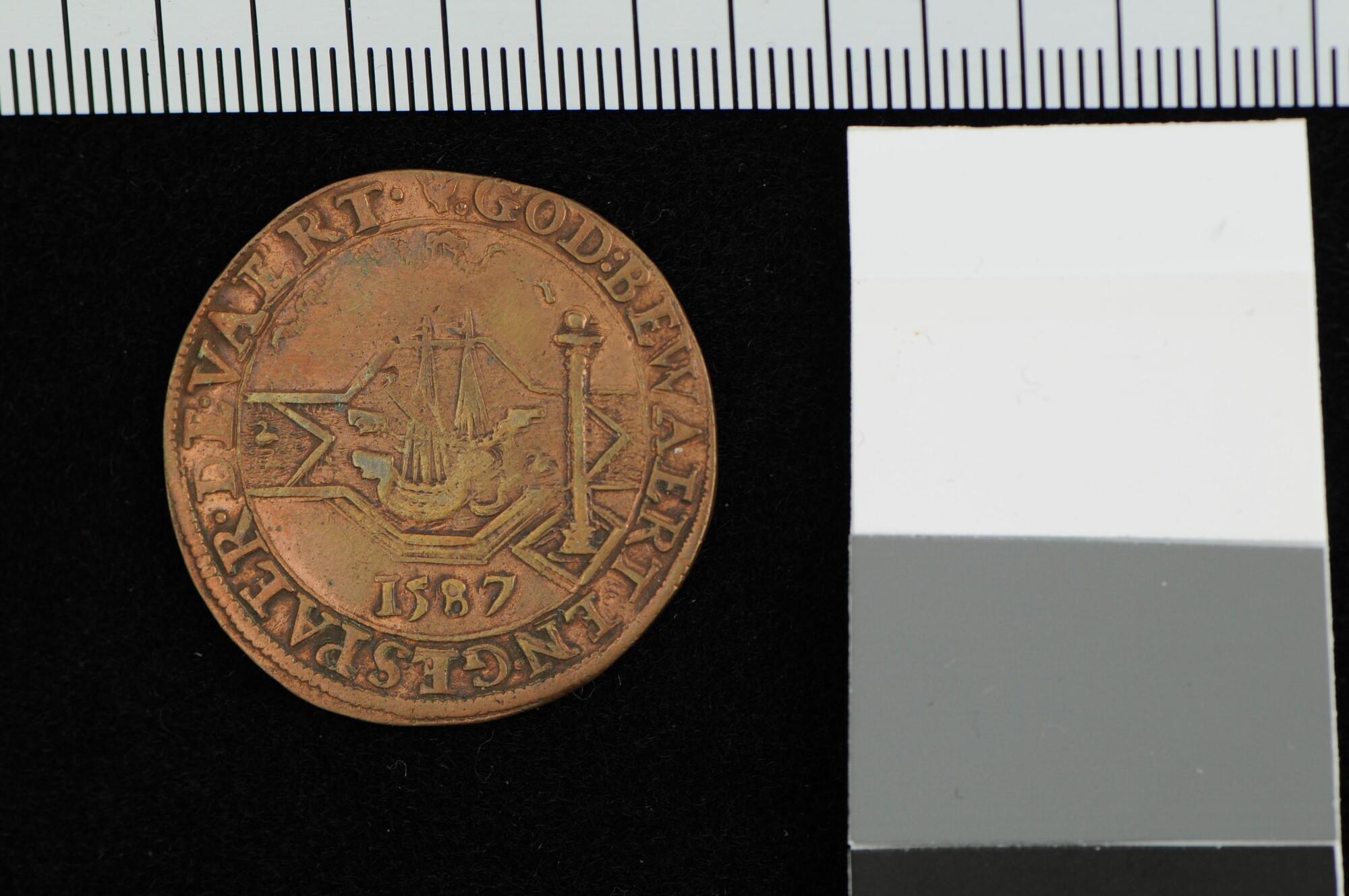 Rekenpenning van Brussel geslagen ter gelegenheid van de uitrusting van de Spaanse onoverwinnelijke vloot, 1587.