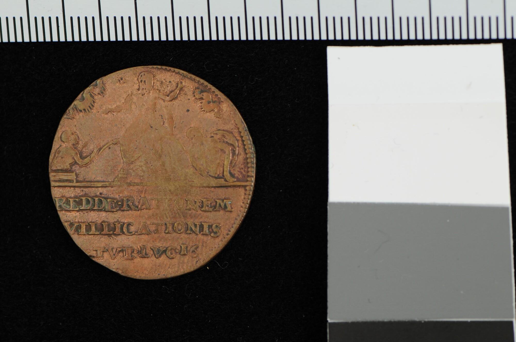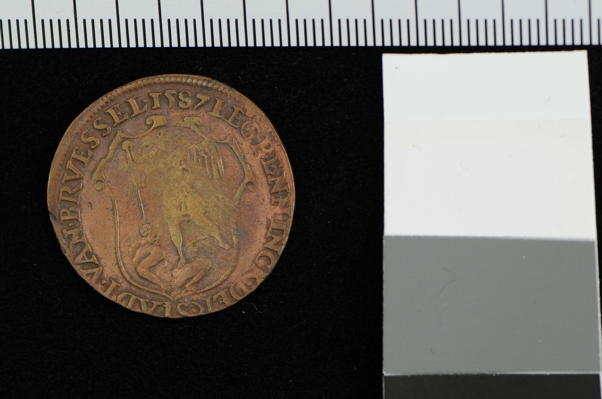 Rekenpenning van Brussel geslagen ter gelegenheid van de uitrusting van de Spaanse onoverwinnelijke vloot, 1587.