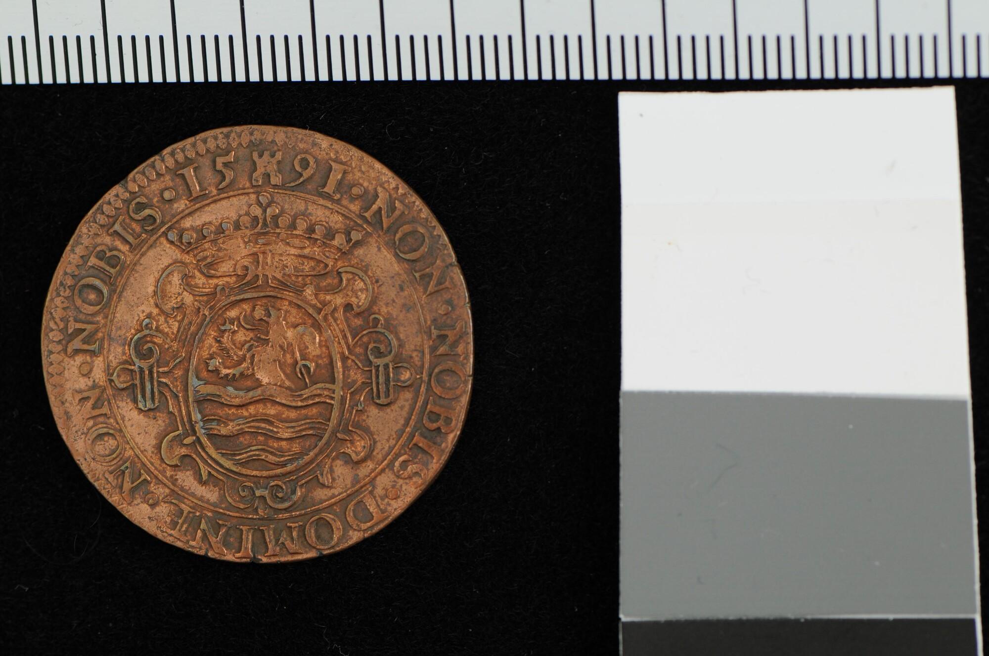 Rekenpenning van Zeeland geslagen ter gelegenheid van de oorlogsvoorbereidingen, 1591