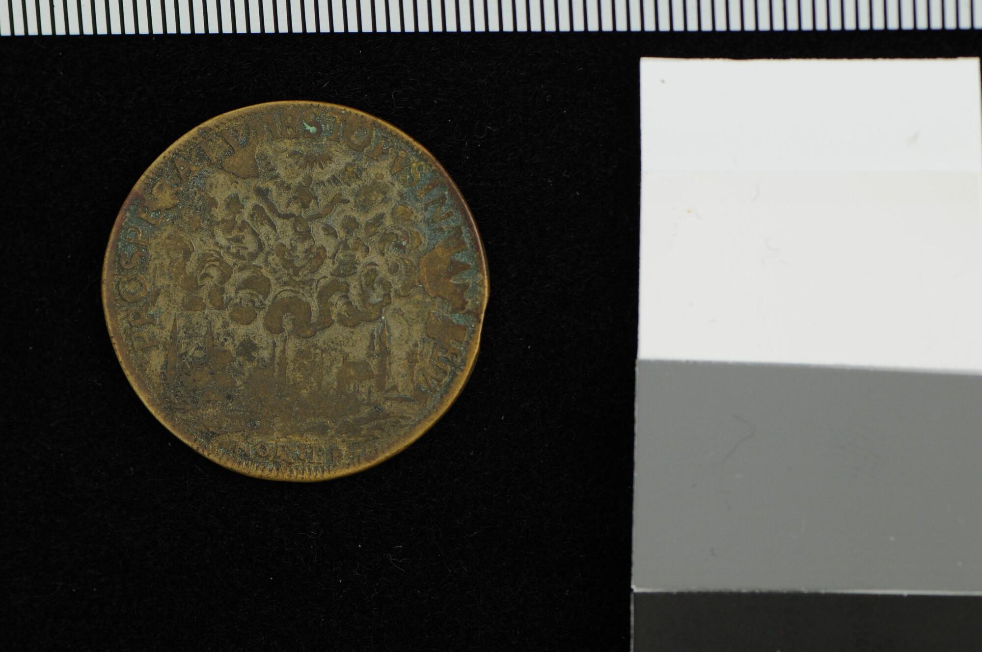 Rekenpenning geslagen te Neurenberg, met afbeelding van een groot schip.