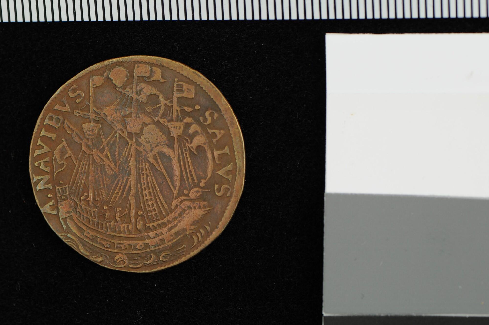 Rekenpenning geslagen op last van de admiraliteit van Duinkerken op Jan van der Tommen, 1644.