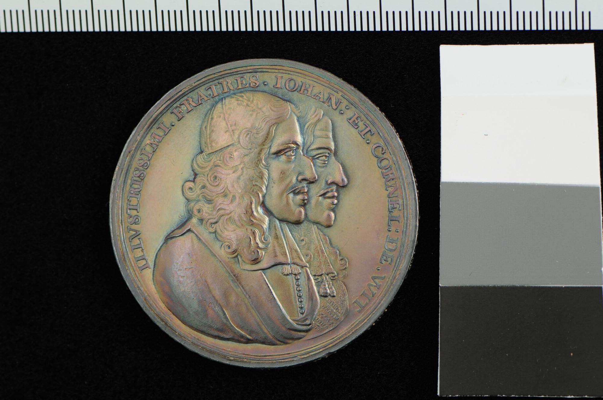 Penning geslagen ter herdenking van de moord op de gebroeders Johan en Cornelis de Witt, 1672.