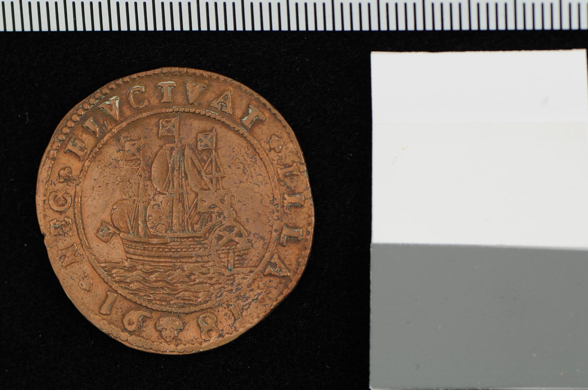 Rekenpenning van Jean Balthazar de Visscher, baron van Celles, 52ste intendant van de vaart van Brussel, 1681.