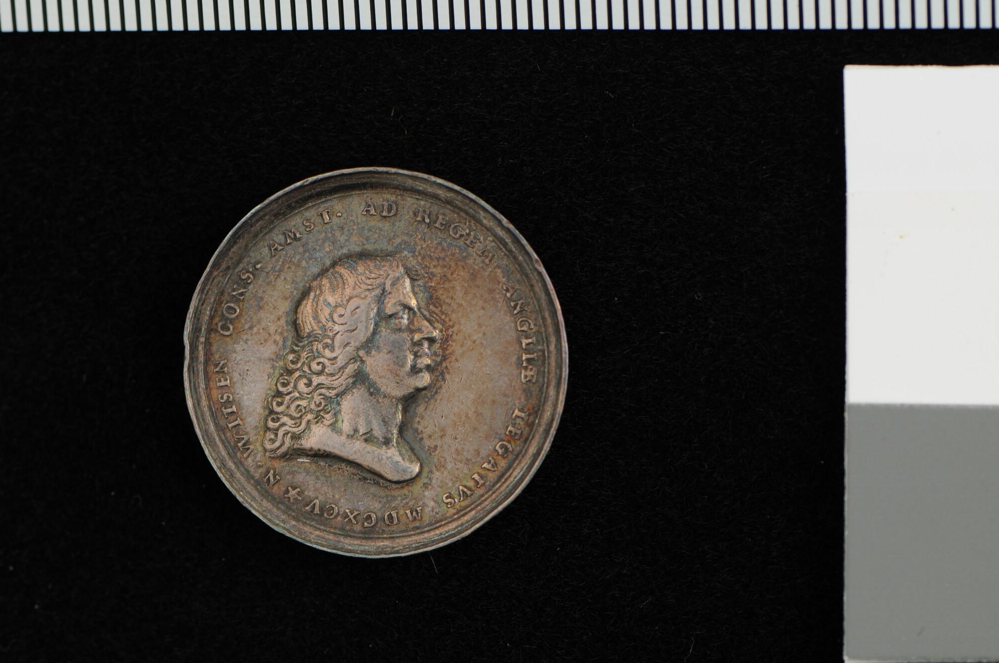 Penning geslagen op Nicolaas Witsen, burgemeester van Amsterdam, ambassadeur bij de koning van Engeland, 1695.