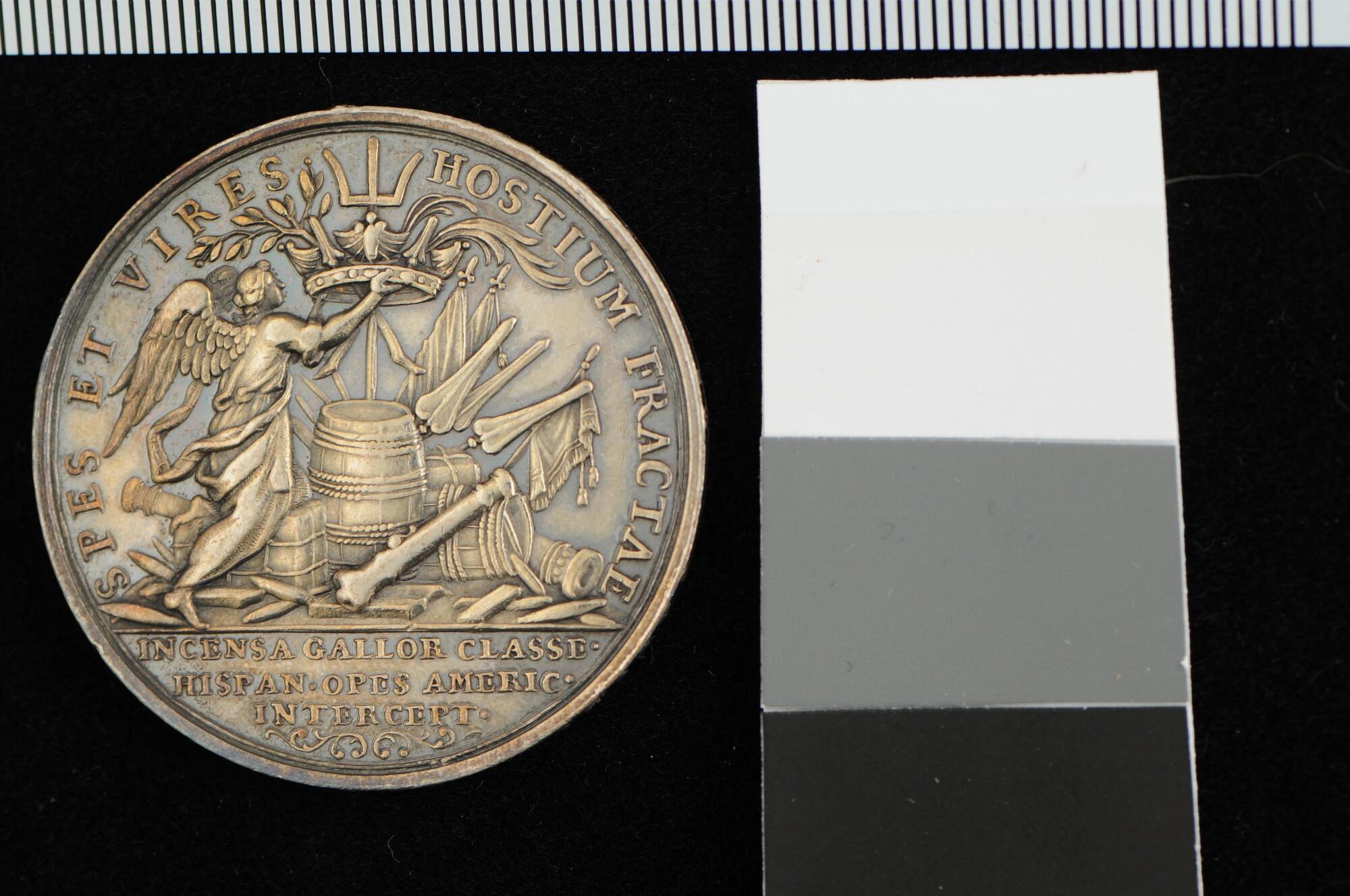 Penning geslagen op de zeeslag in de Baai van Vigo en het verbranden van de Franse en Spaanse vloot, 1702
