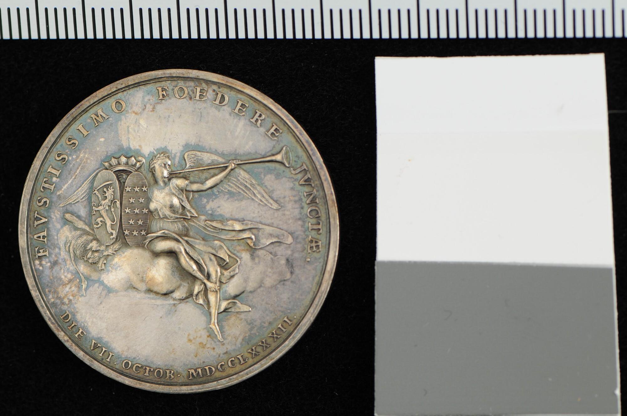 Penning op het sluiten van het verbond van vriendschap en koophandel tussen de Verenigde Staten van Noord-Amerika en de Republiek der Verenigde Nederlanden, 1782.