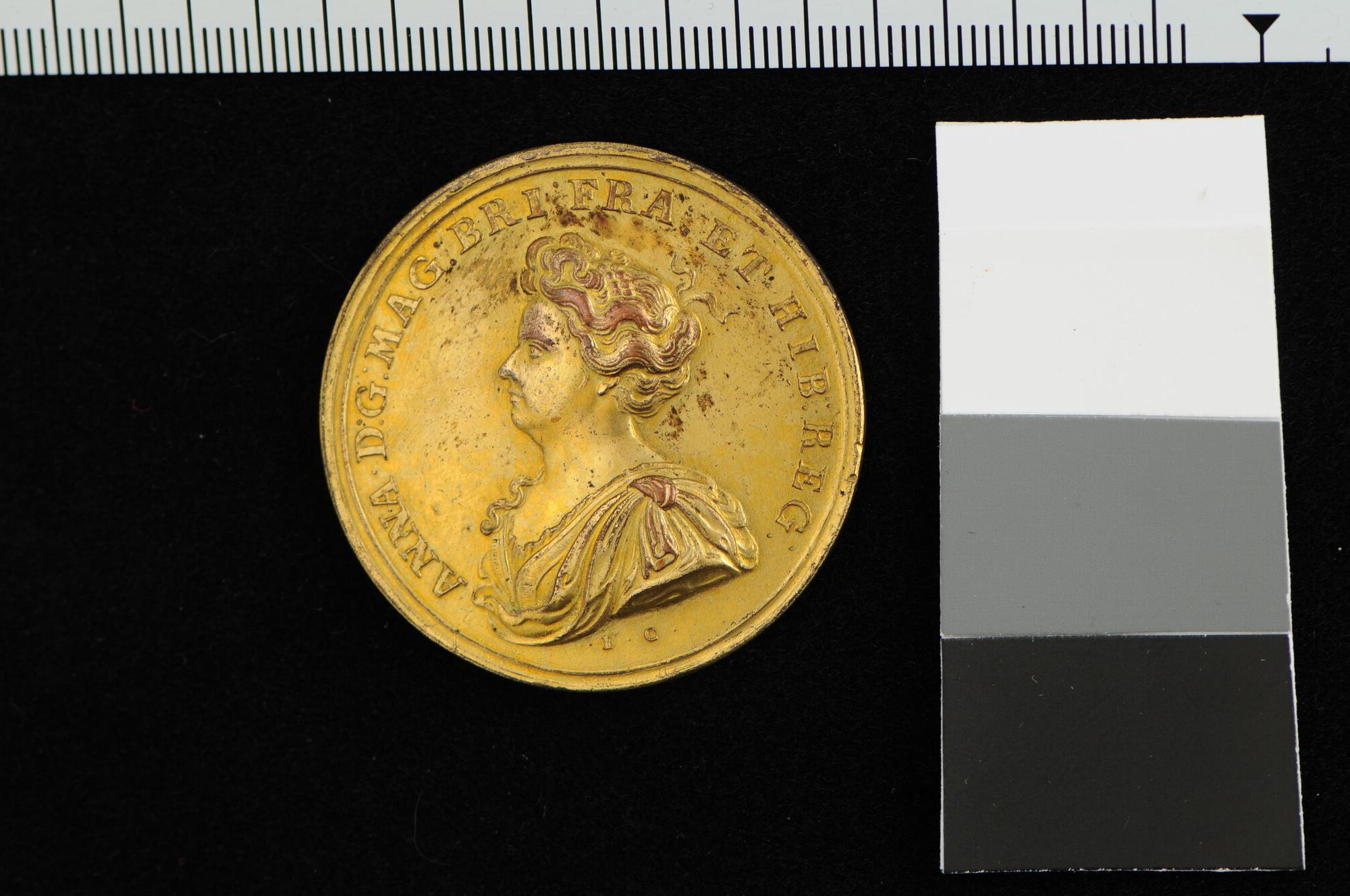Penning geslagen ter herinnering van de inname van Gibraltar en het verslaan van de Franse vloot bij Malaga, 1704.