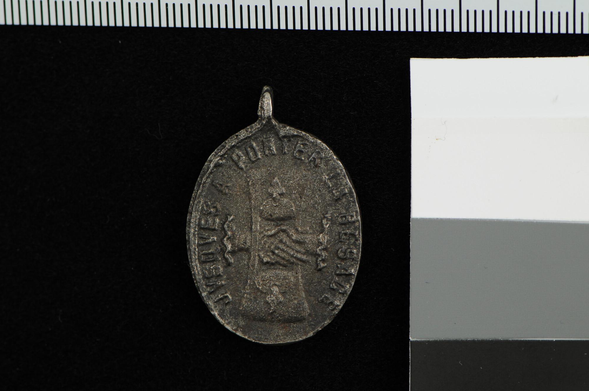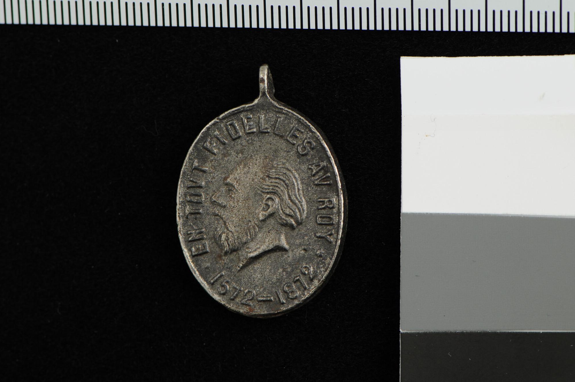 Ovale draagpenning geslagen ter herinnering aan het derde eeuwfeest van de inname van Den Briel, 1872.