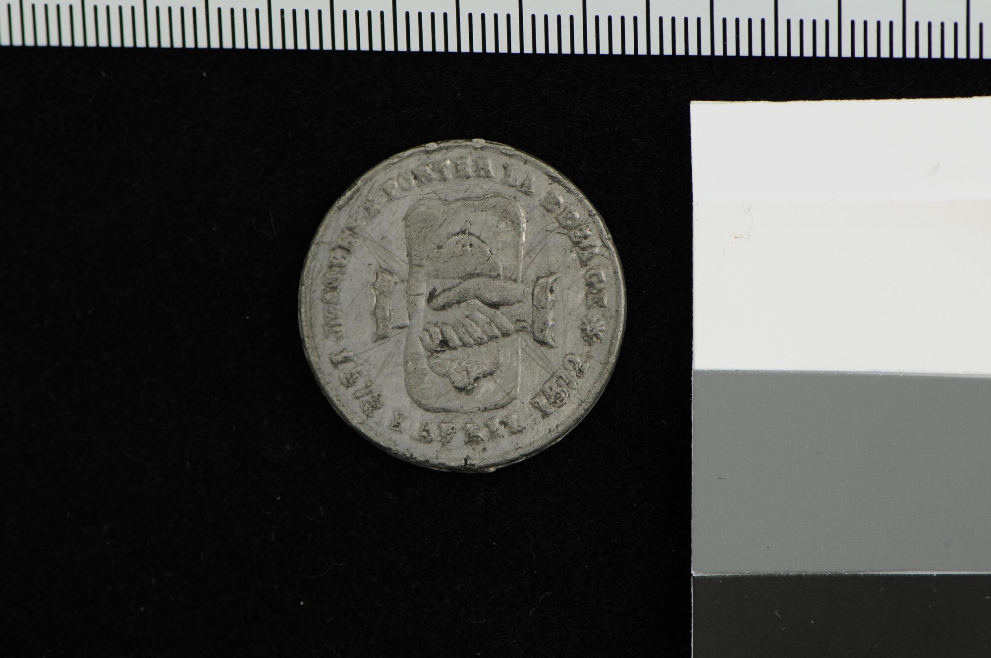 Draagpenning geslagen ter herinnering aan het derde eeuwfeest van de inname van Den Briel, 1872.