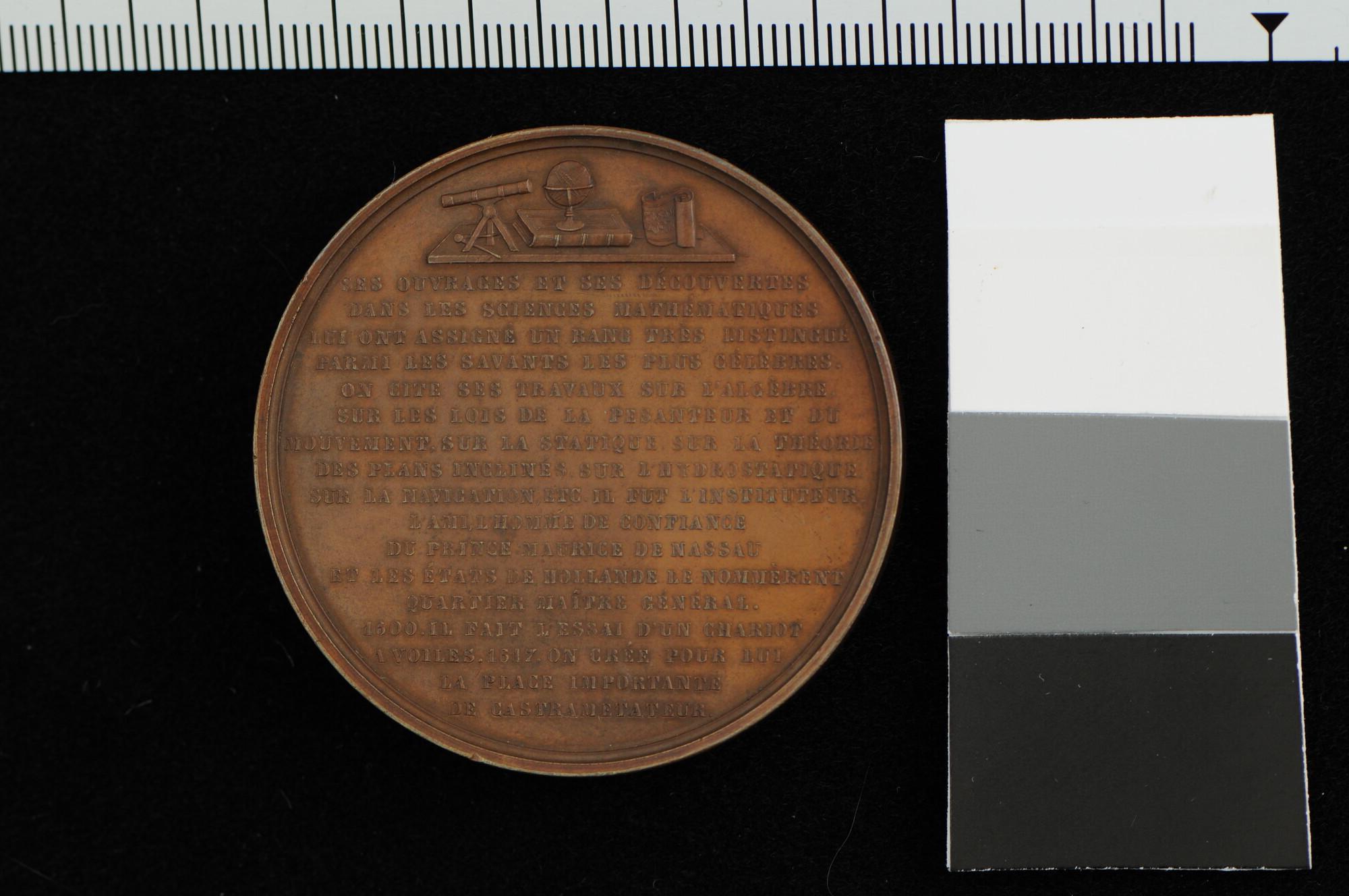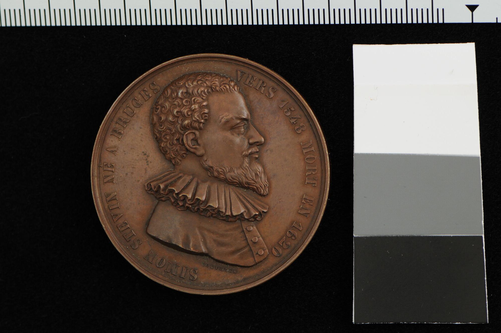 Penning geslagen ter gelegenheid van de 300ste geboortedag van Simon Stevin (1548-1620), 1848.