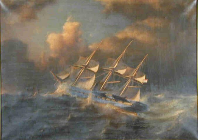 Het schroefstoomschip 4e klasse Zr.Ms. Riouw in zwaar weer