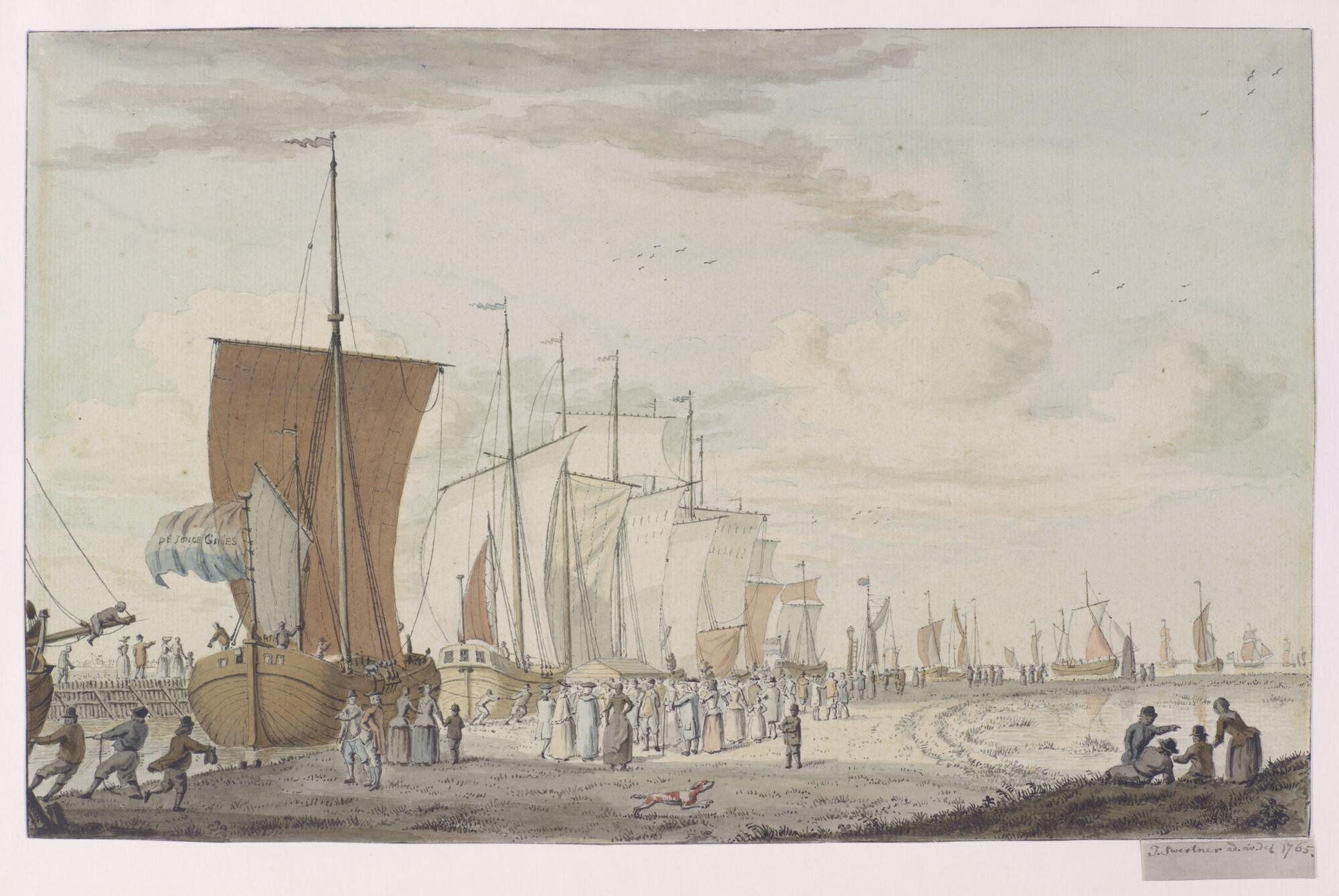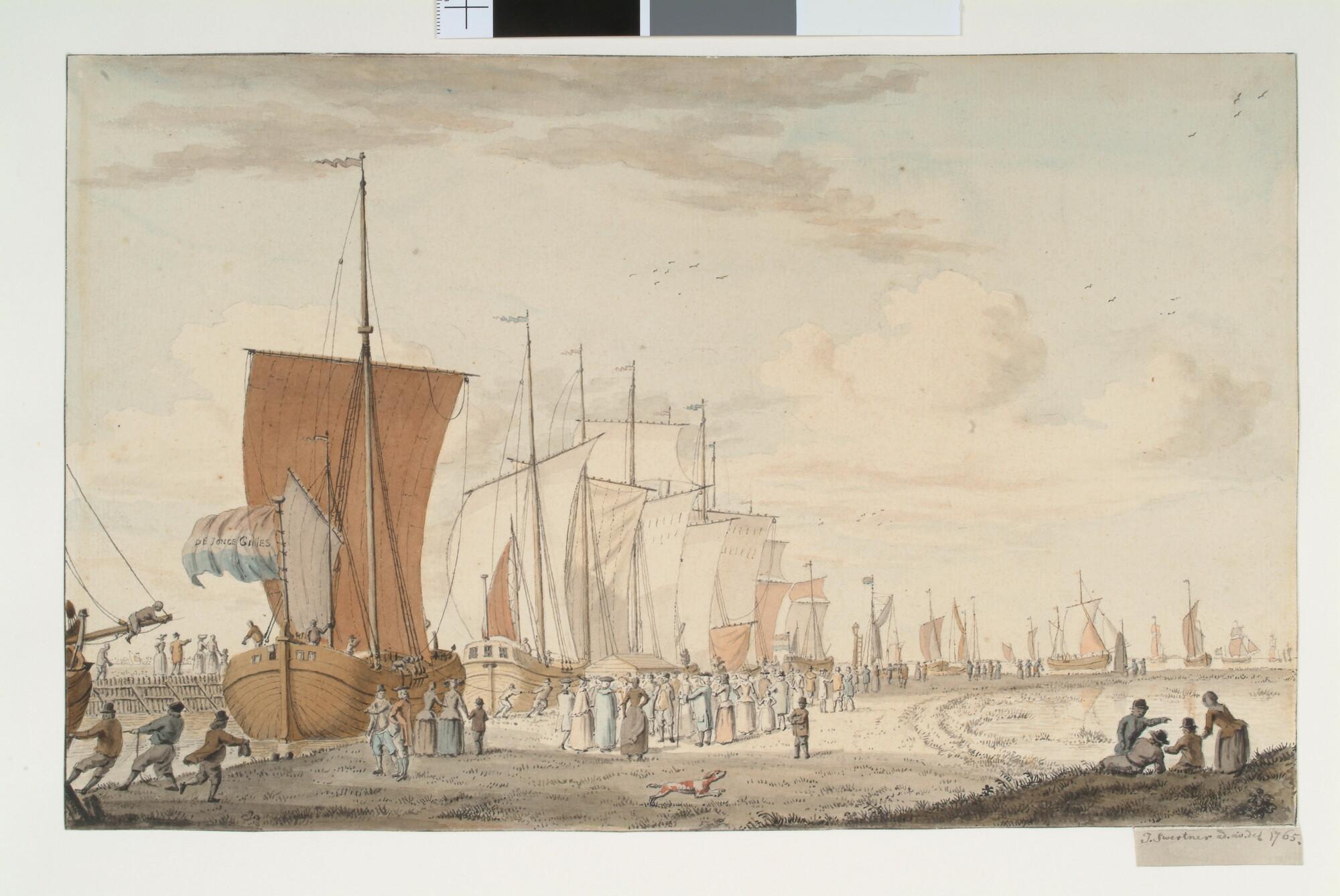 Het uitzeilen van de haringbuizen te Vlaardingen, gezien van de Westhavenkade.