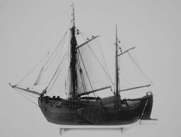 Getuigd model van een Hollandse aak. De aken hadden geen voorsteven; het vlak liep daar opwaarts door tot in de neus en de huidgangen eindigden tegen dit opgebogen vlak. Verder waren deze schepen overnaads gebouwd. Het tuig bestond uit 1 1/2 mast; zowel grootzeil als bezaan werden gevoerd aan gaffel en boom, terwijl bij gunstige ...
