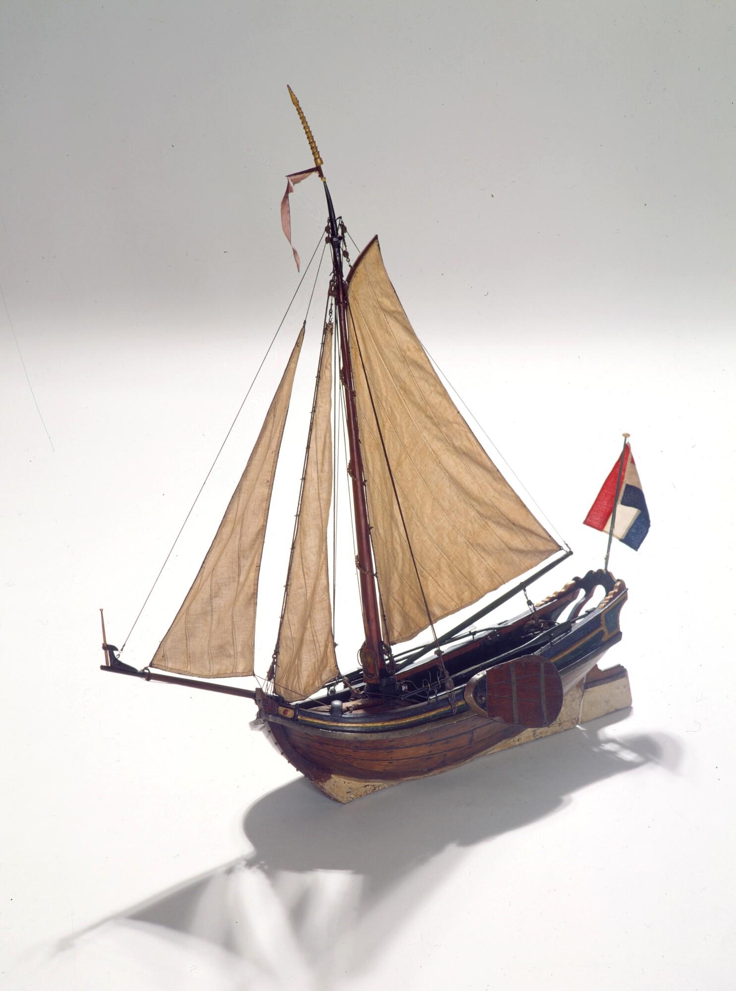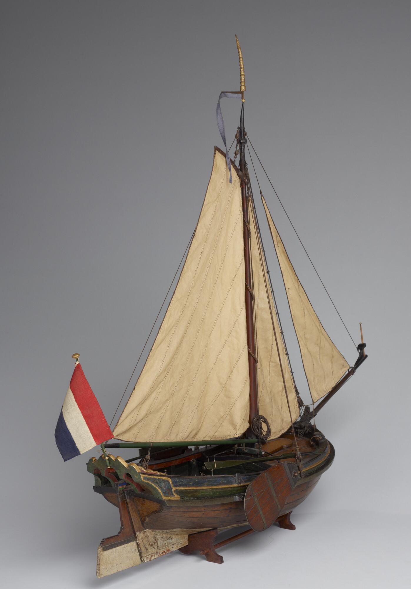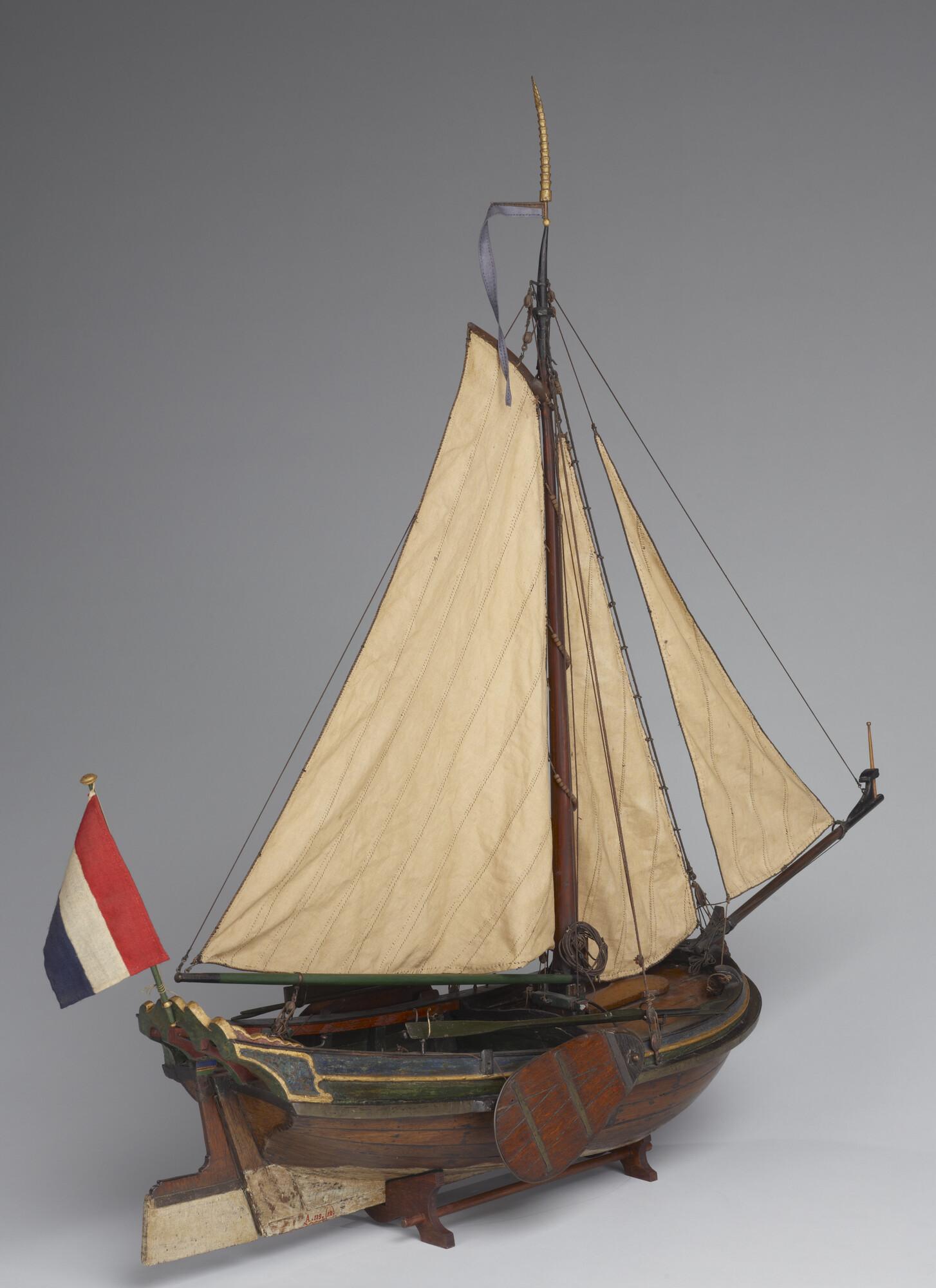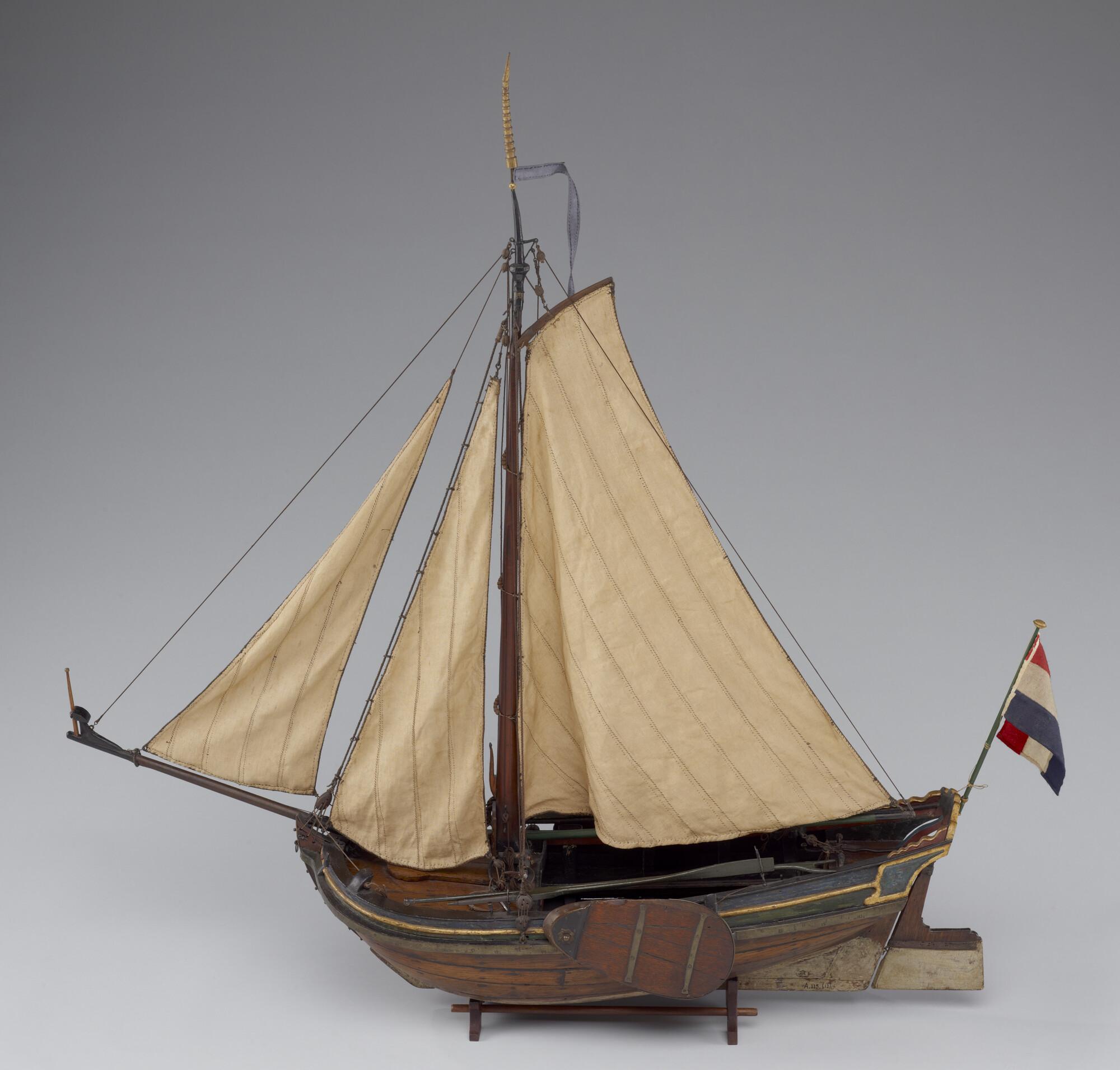 Getuigd model van een hekjacht met opgewerkt hek. Het dankt zijn naam aan het 'hek' op het achterschip. De huidgangen eindigen op een platte spiegel. De tuigage betaat uit grootzeil, fok en kluiver. Bij het model zijn ook twee roeiriemen.
