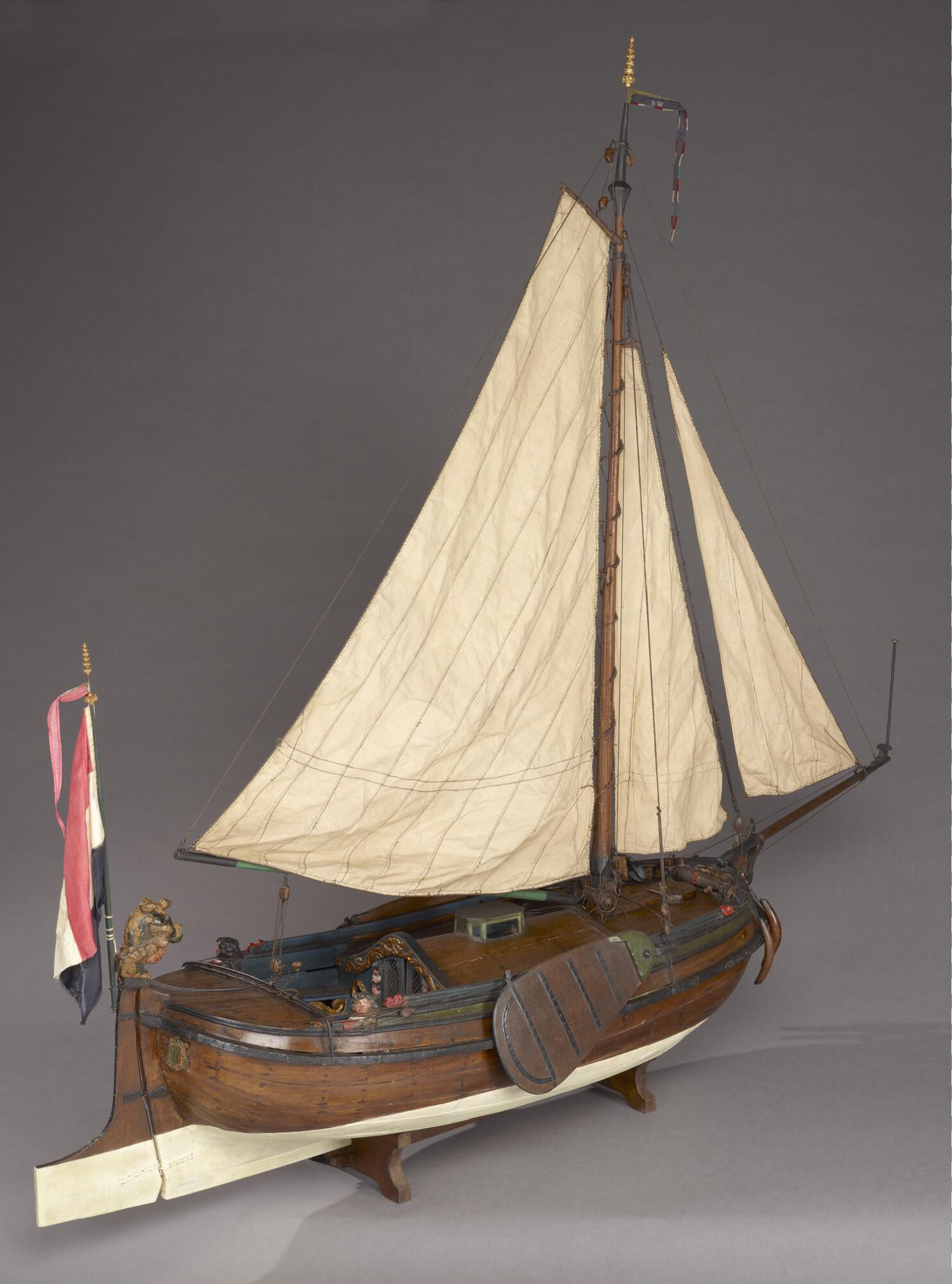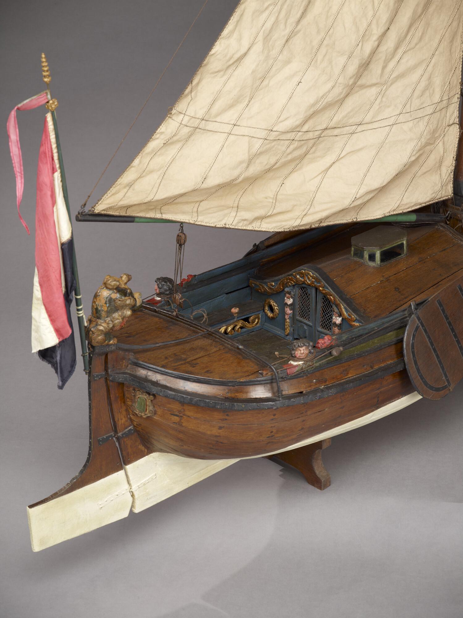 Getuigd model van een boeier, ook kopjacht genoemd, circa 1700.