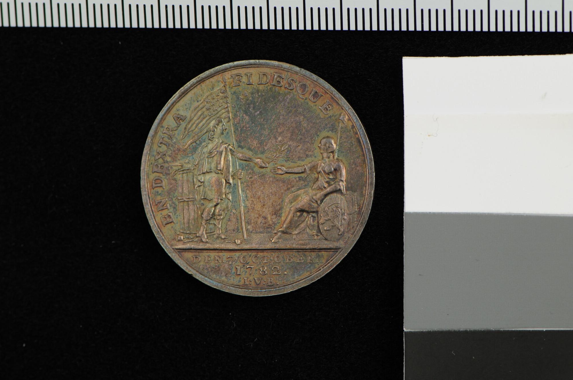 Penning op het sluiten van het verbond van vriendschap en koophandel tussen de Verenigde Staten van Amerika en de Republiek der Verenigde Nederlanden, 1782.