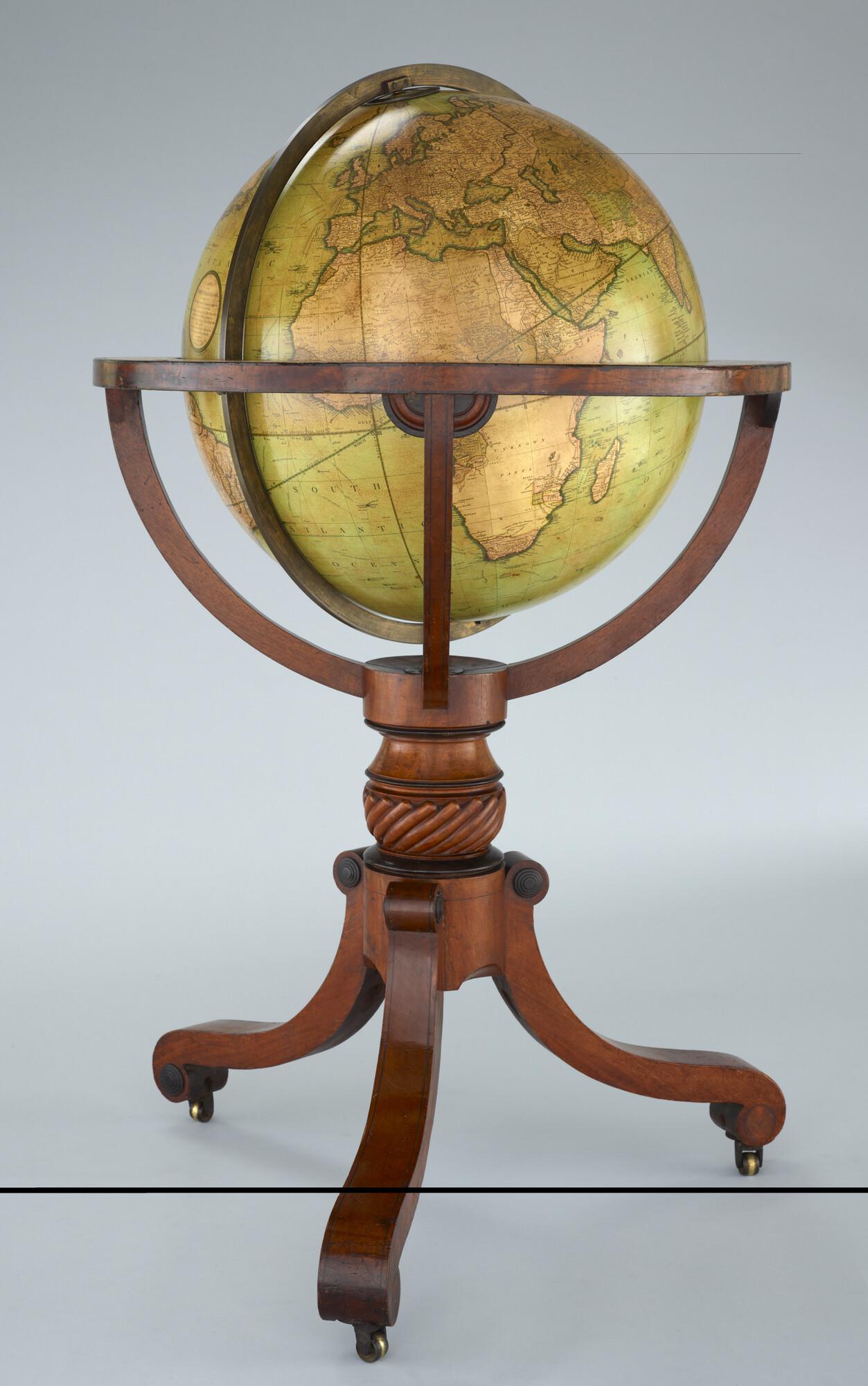 Aardglobe van 53,5 cm. in doorsnede door John en William Cary, 1815, in de verbeterde uitgave van 1819